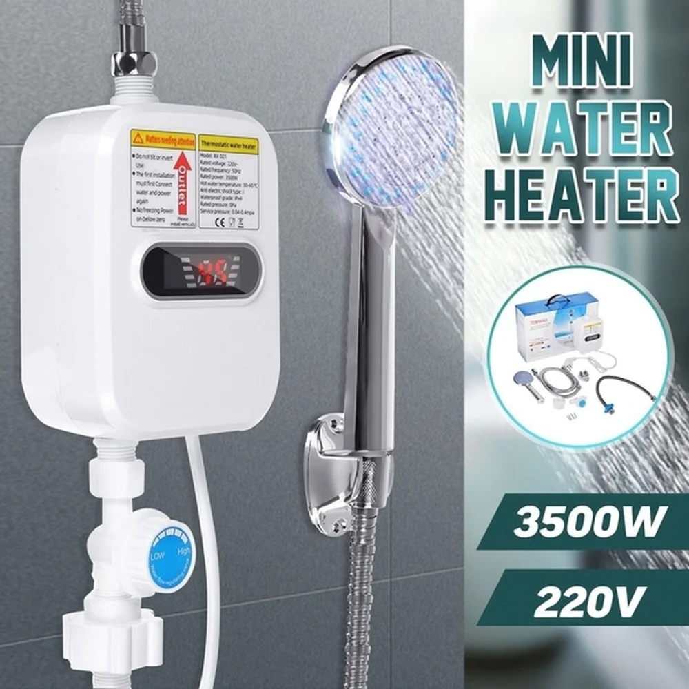 ชุดฝักบัวอาบน้ำขนาดเล็ก3500W, pemanas Air listrik ได้ทันทีก๊อกน้ำเครื่องทำน้ำอุ่นไร้ถังสำหรับห้องครัว