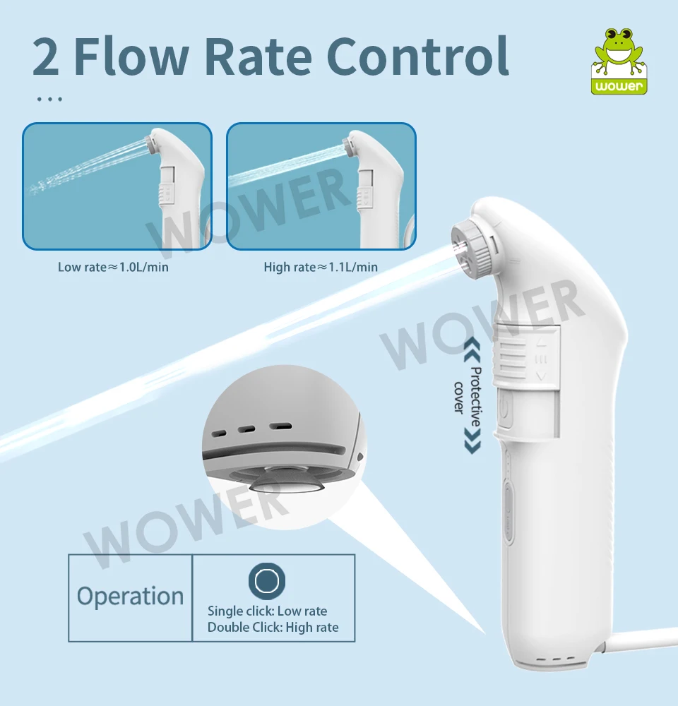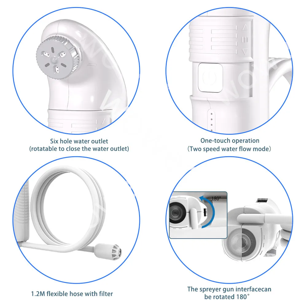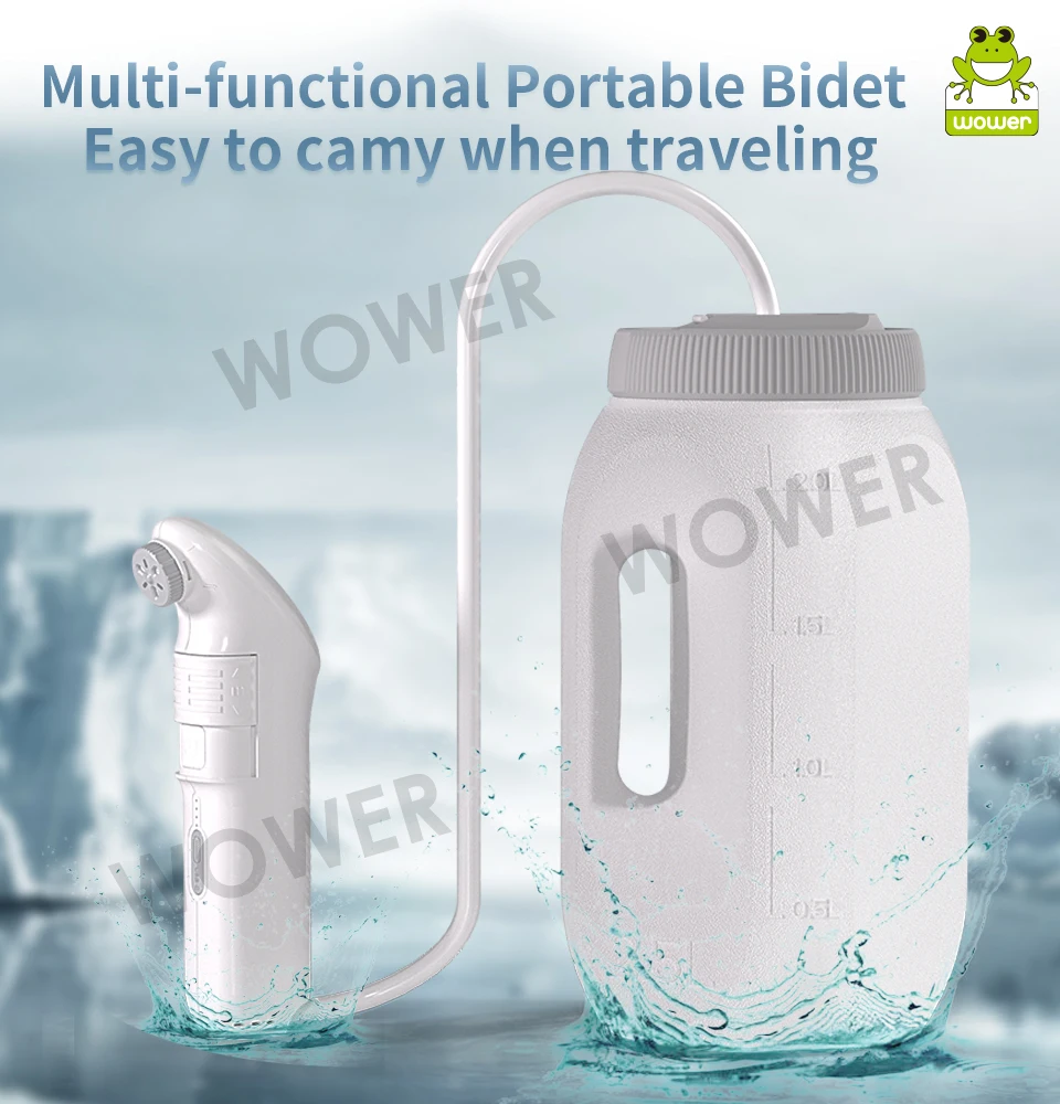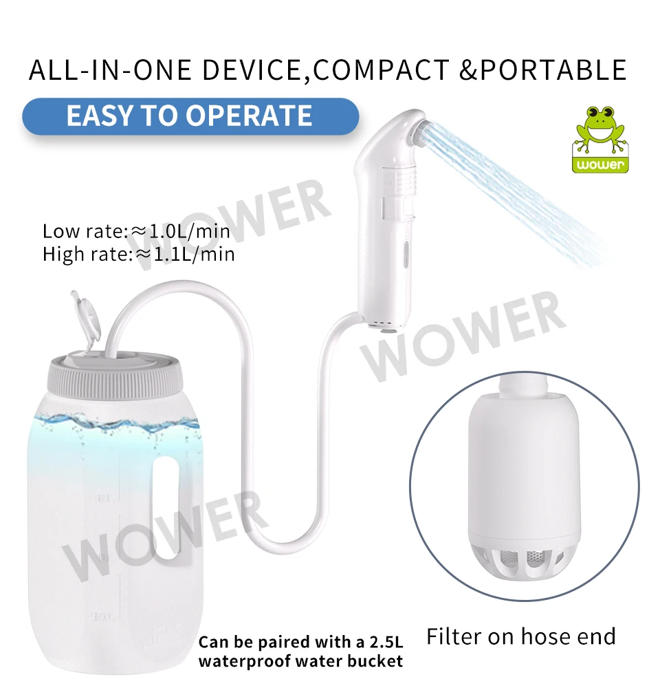 เครื่องฉีดชำระแบบพกพา 1600mAh พร้อมแรงดันน้ำ 2 ระดับ กันน้ำระดับ IPX6 ชาร์จซ้ำได้ เหมาะสำหรับการตั้งแคมป์และการเดินทาง