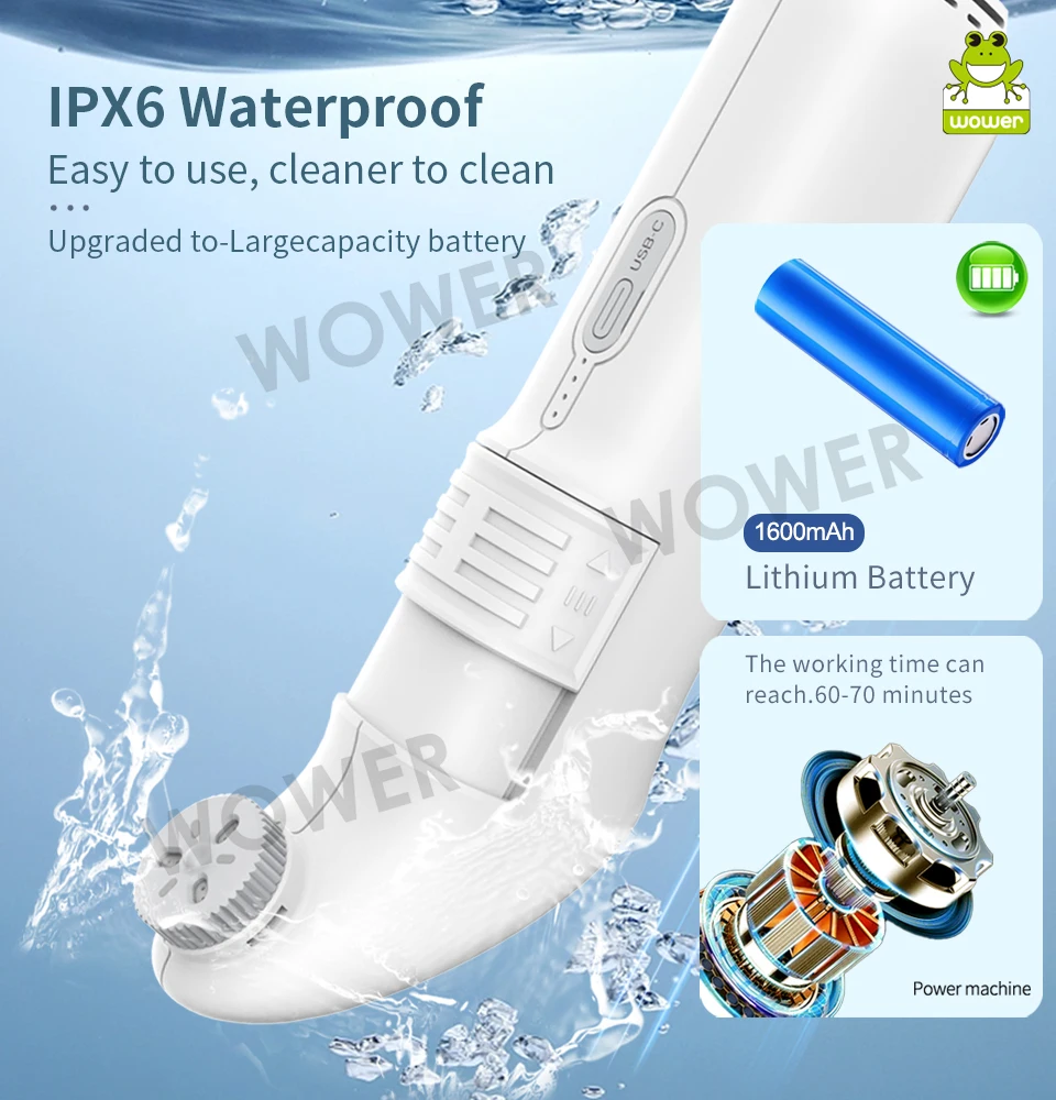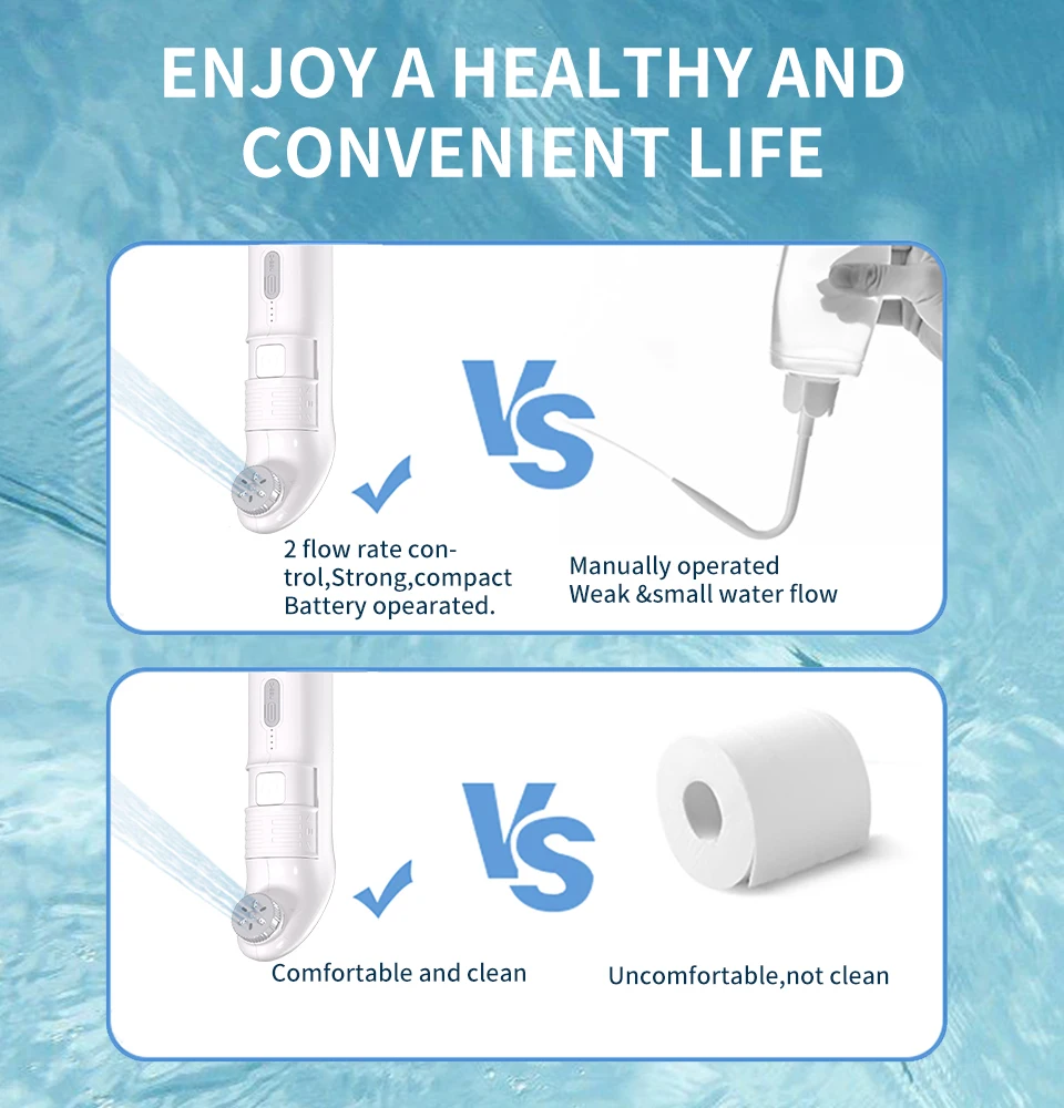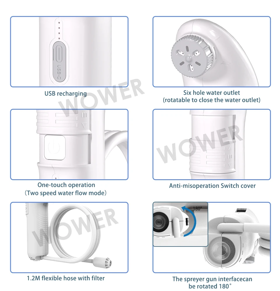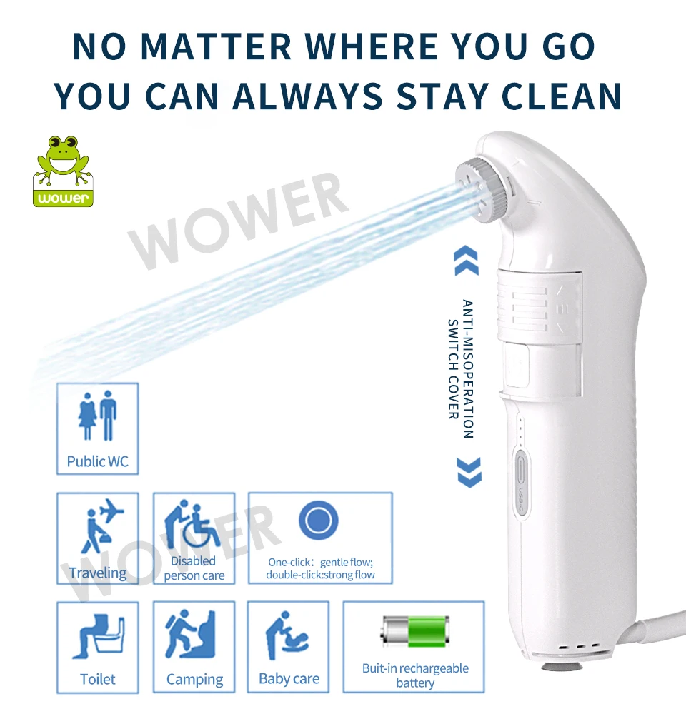 เครื่องฉีดชำระแบบพกพา 1600mAh พร้อมแรงดันน้ำ 2 ระดับ กันน้ำระดับ IPX6 ชาร์จซ้ำได้ เหมาะสำหรับการตั้งแคมป์และการเดินทาง