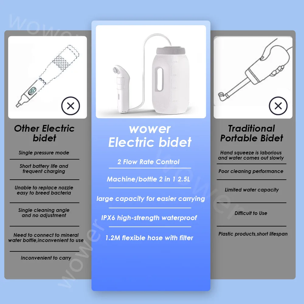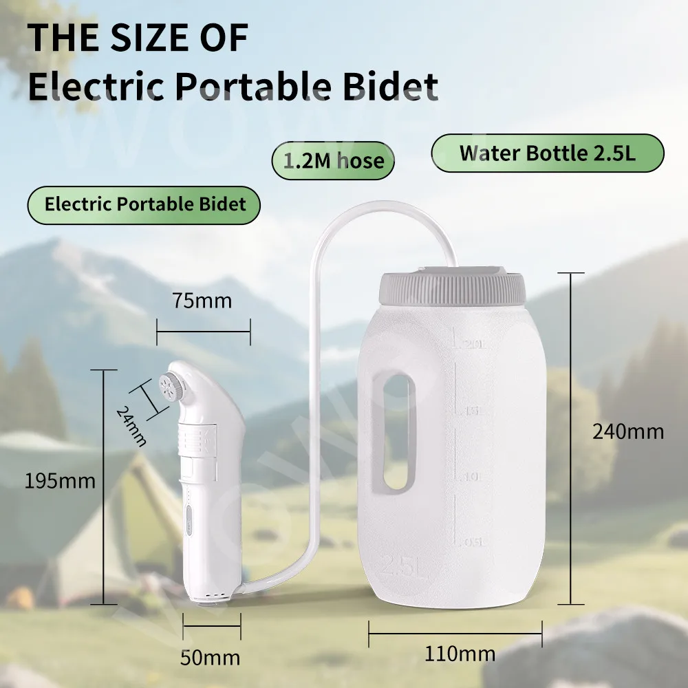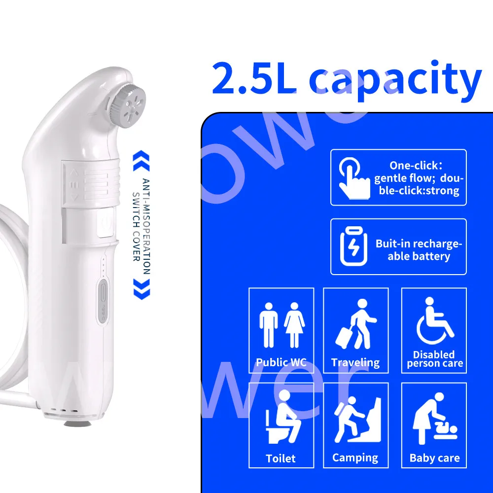 2.5LแบบพกพาBidet Sprayer 2 โหมดความดัน 1600mAhกันน้ำแบบชาร์จไฟได้Shattaf Camping Travel Bidetฝักบัวสเปรย์