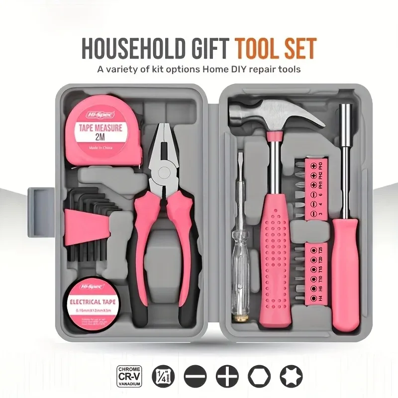กล่องเครื่องมืออเนกประสงค์สำหรับใช้ในบ้าน, ชุดเครื่องมือฮาร์ดแวร์ครบชุด, ตลับเมตรแบบผสม, ชุดเครื่องมือซ่อมแซมแบบใช้มือ
