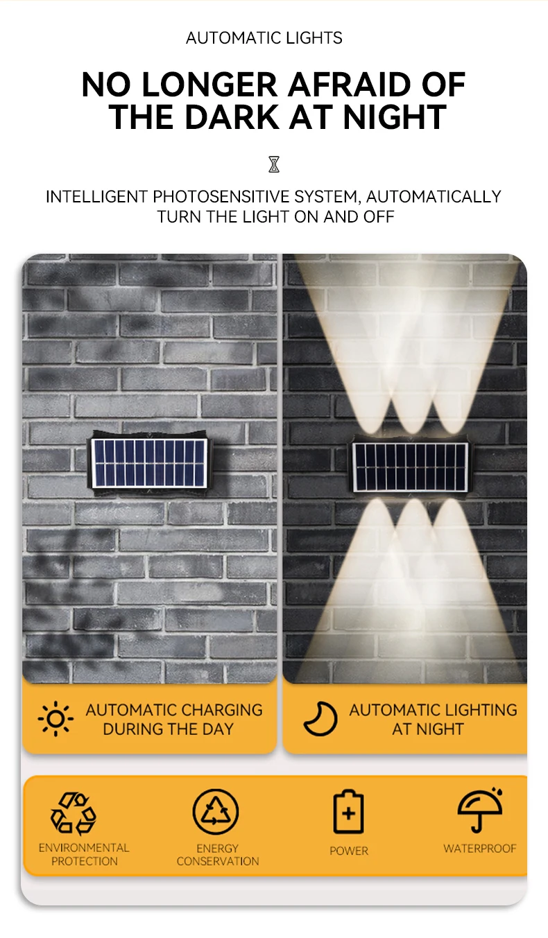 โคมไฟติดผนังพลังงานแสงอาทิตย์ LED Courtyard Street กันน้ําภายนอกสวนโคมไฟติดผนังพลังงานแสงอาทิตย์ตกแต่งบ้านบ้านโคมไฟติดผนัง LED กลางแจ้ง