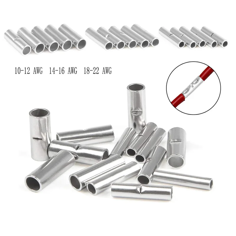 ขั้วต่อสายไฟแบบไม่มีฉนวน 200 ชิ้น ขั้วต่อสายไฟฟ้าแบบปลายต่อ ขั้วต่อทองแดงเปลือย ขั้วต่อแบบจีบ 12-10Awg 16-14Awg