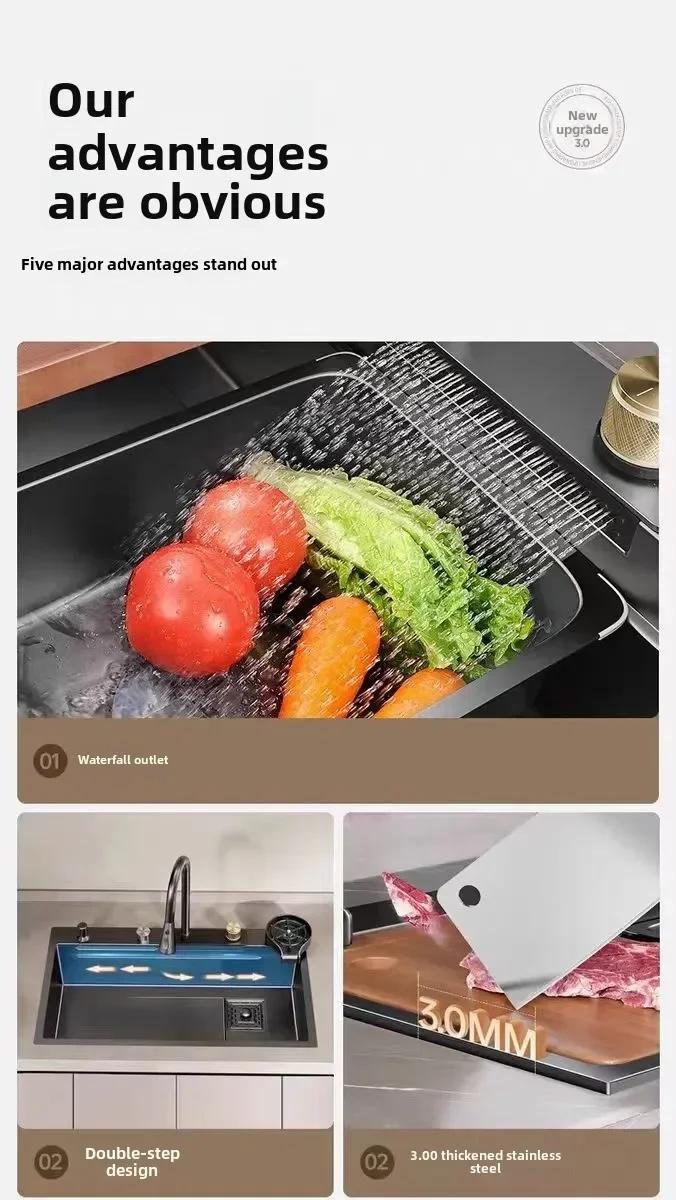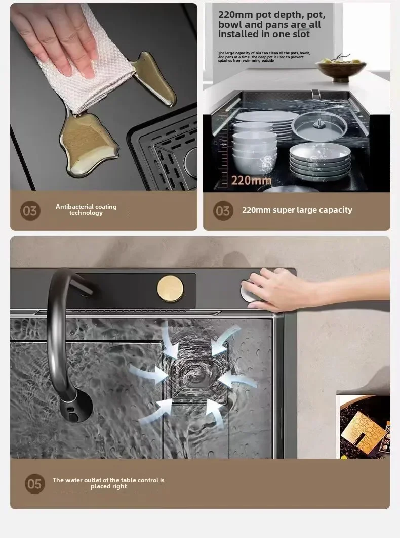 อ่างล้างจานสแตนเลส 304 หนาพิเศษ ขนาดใหญ่ อ่างล้างผักเดี่ยว อ่างล้างจานสแตนเลสสำหรับวางบนโต๊ะ
