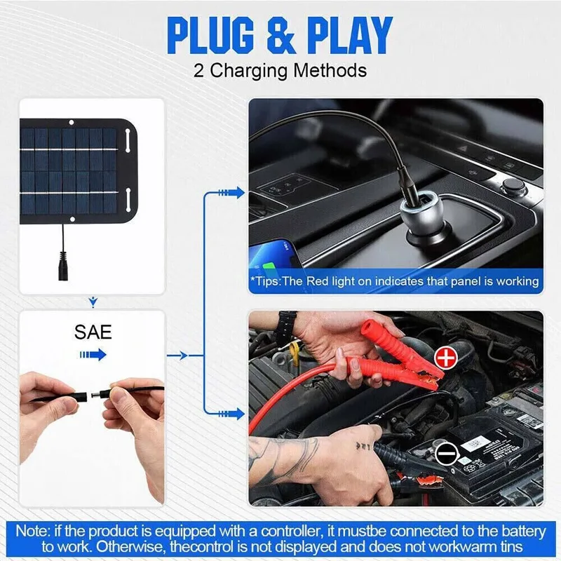 【การใช้งานที่หลากหลาย】เครื่องชาร์จพลังงานแสงอาทิตย์แบบหยดนี้เหมาะสำหรับยานพาหนะหลากหลายประเภท เช่น รถบ้าน (RV), รถแคมป์, รถแทรกเตอร์, รถจักรยานยนต์, รถสโนว์โมบิล และเรือ