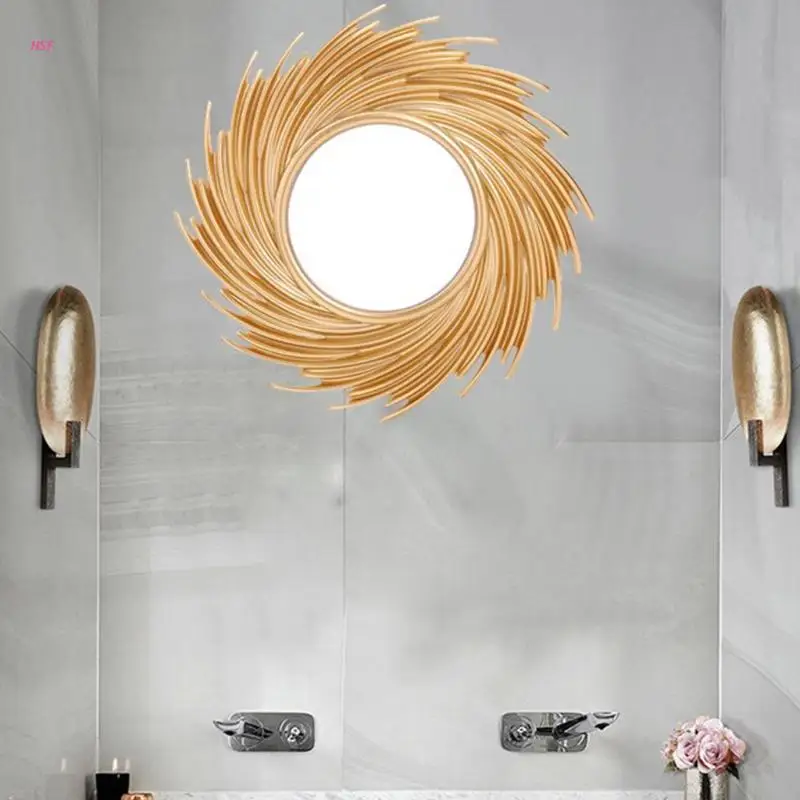 Sun Shape กระจกตกแต่งหวายนวัตกรรมศิลปะตกแต่งรอบแต่งหน้ากระจก Dressing ห้องน้ํากระจกแขวนผนัง