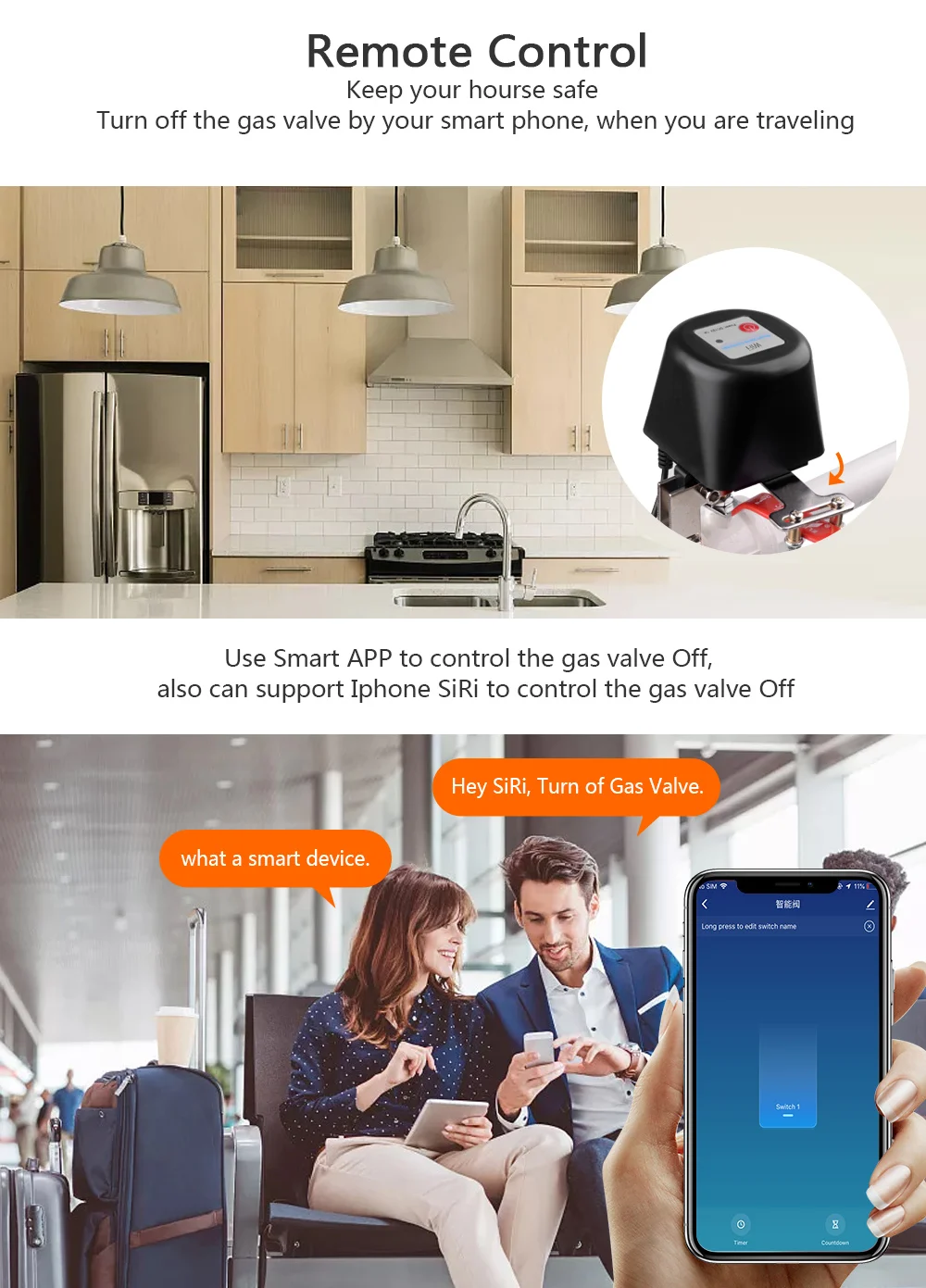 ตัวควบคุมวาล์วน้ำ/แก๊สไร้สายสำหรับระบบอัตโนมัติภายในบ้านมาตรฐาน