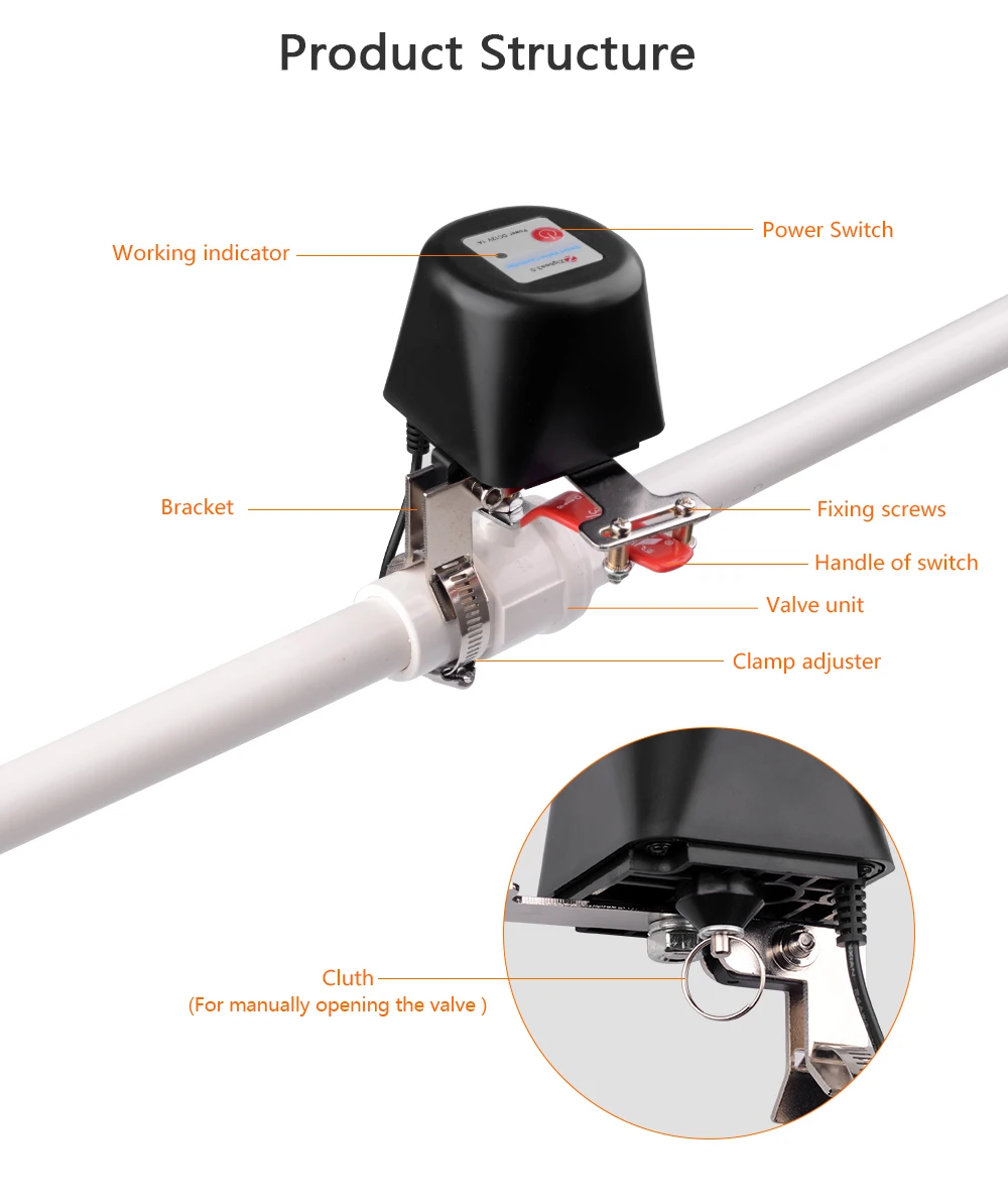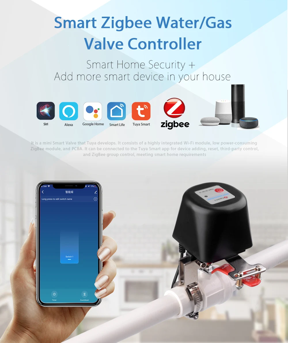วาล์วน้ำ/แก๊สอัจฉริยะ Zigbee ระบบควบคุมอัตโนมัติ Tuya สำหรับห้องครัว สวน และบ้าน ใช้งานร่วมกับ Alexa และ Google Assistant