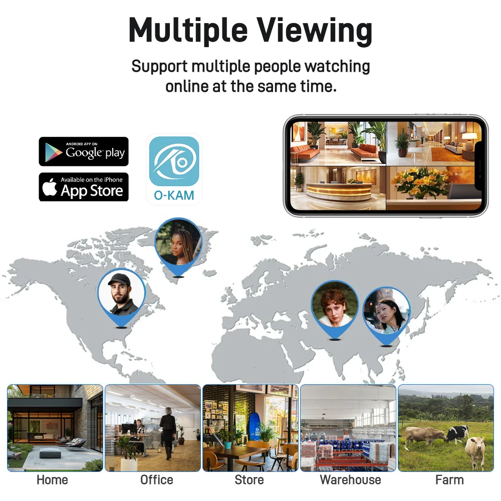 กล้อง DIFANG 20MP AOV ไร้สาย 4G พลังงานแสงอาทิตย์ จอแสดงผลสี่จอ 360 องศา ° กล้องวงจรปิดไร้สาย 3 เลนส์ PTZ ซูมได้ รุ่นใหม่ ใช้พลังงานแสงอาทิตย์ O-kam Pro