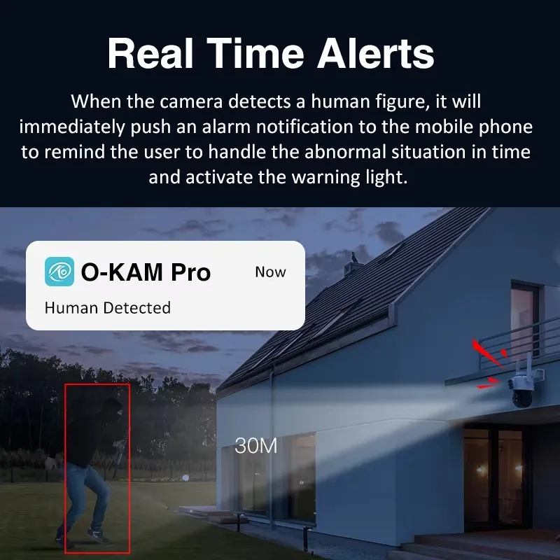กล้องวงจรปิดพลังงานแสงอาทิตย์สำหรับใช้งานกลางแจ้งรุ่นนี้มาพร้อมกับเซ็นเซอร์ตรวจจับการเคลื่อนไหว PIR ที่มีความไวสูงและระบบตรวจจับด้วยเรดาร์ เพื่อเพิ่มประสิทธิภาพการควบคุมและลดการแจ้งเตือนที่ผิดพลาดซึ่งเกิดจากฝนหรือแมลง