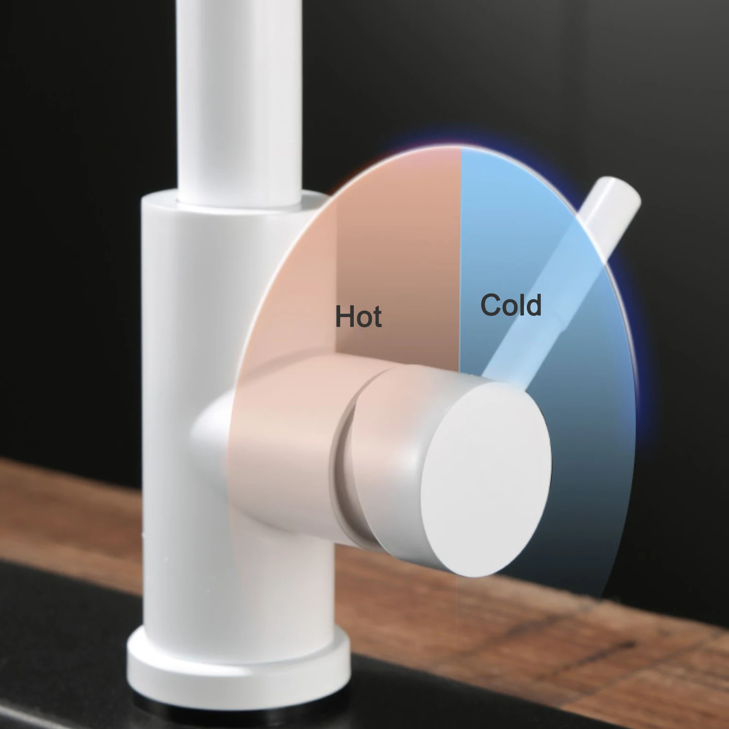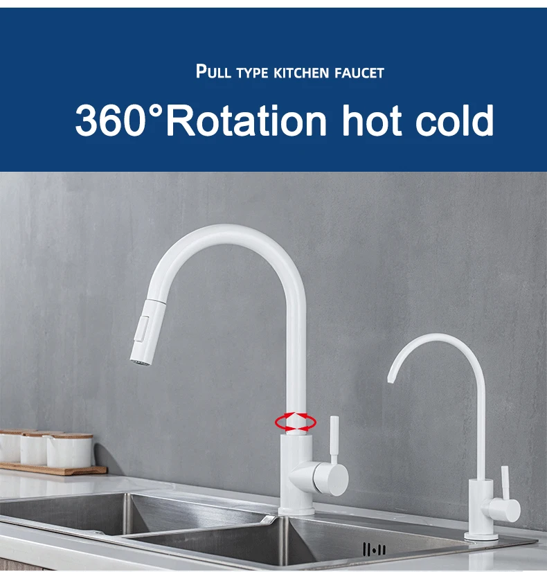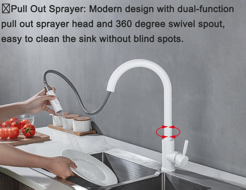 - ☛ PULL OUT SPRAYER: 360-degree rotating sprayer and nozzle, 360-degree high arched rotating nozzle can provide all-round washing for your kitchen sink, single-handle faucet can control water temperature and flow more conveniently. The utility sink faucet facilitates various tasks of kitchen space.