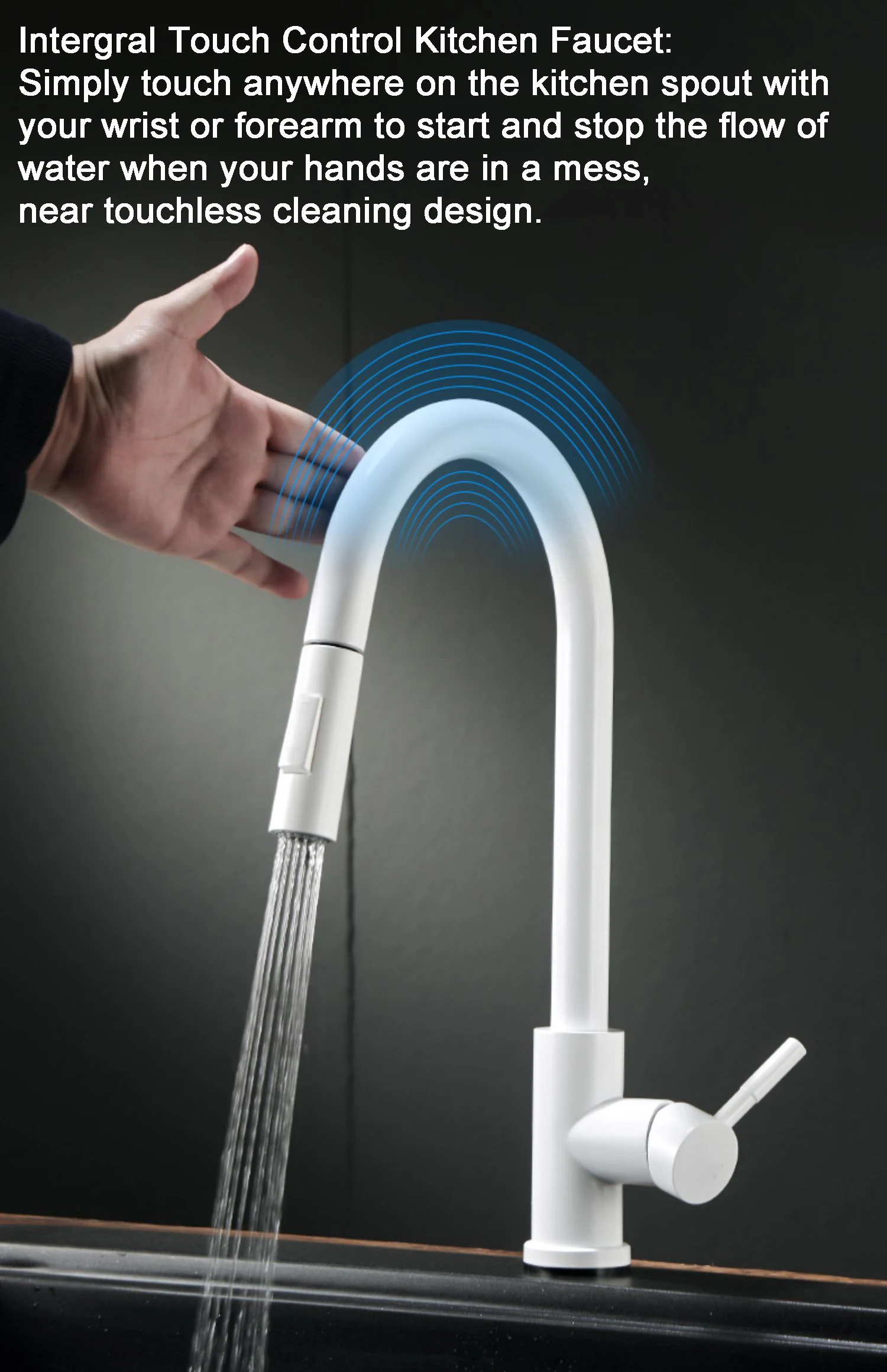 - ☛ TOUCH CONTROL TECHNOLOGY: Unlike traditional kitchen faucets. No longer using the single lever handle with your messy hand, you just touching anywhere of the gooseneck on the kitchen faucet with your hand or forearm to start and stop the flowing. KEER achieve a nearly contactless cleaning design of the faucet.
