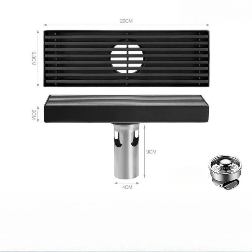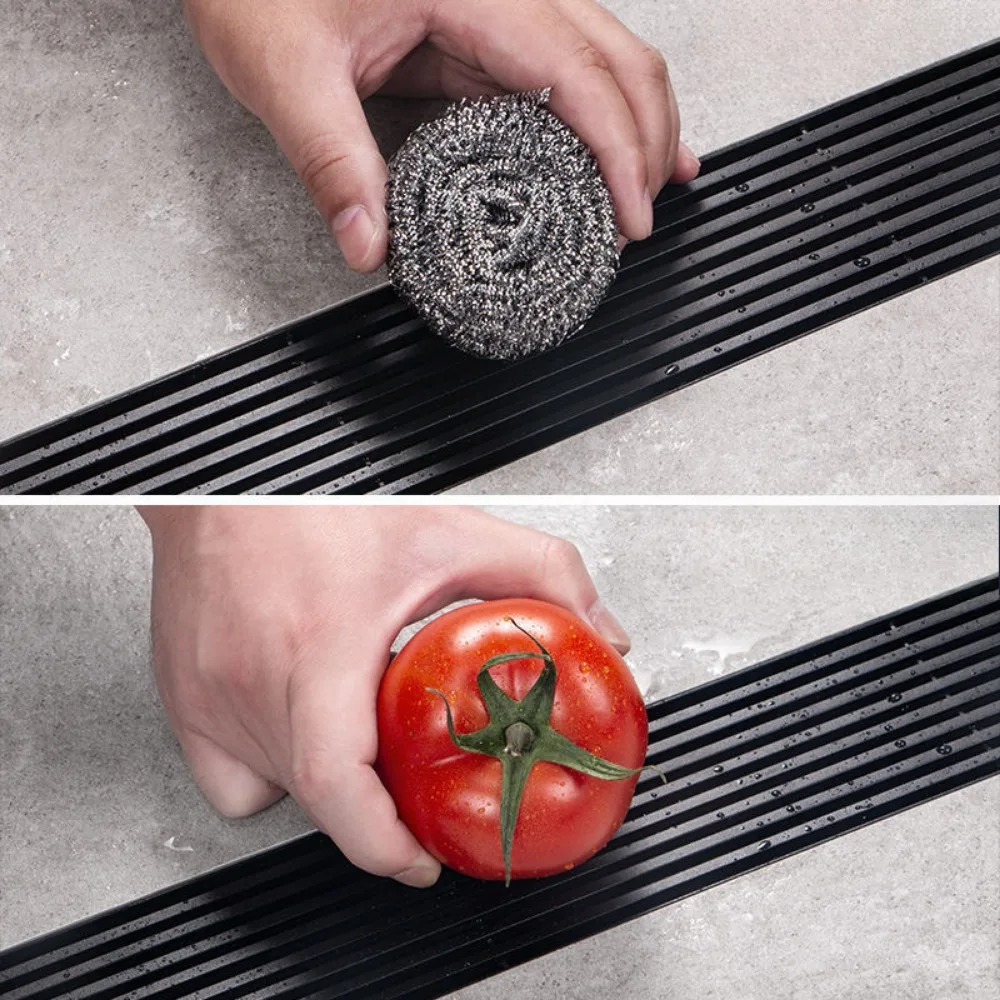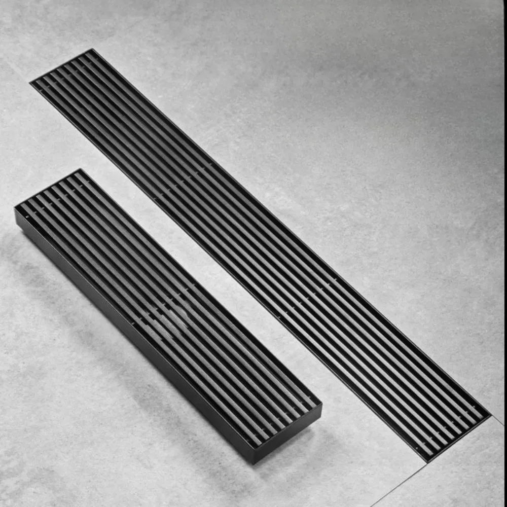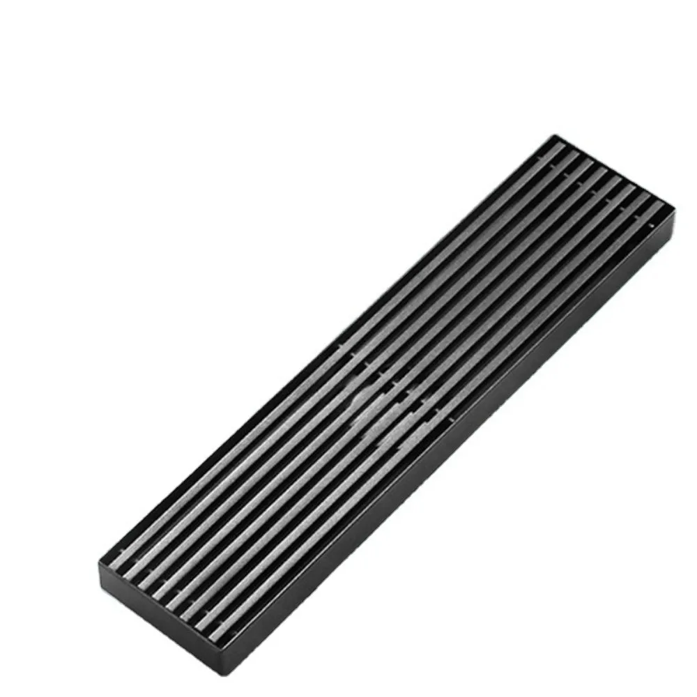 รางระบายน้ำยาวสีดำ สแตนเลส รางระบายน้ำแบบขยายสำหรับห้องอาบน้ำ กลางแจ้ง ระบายน้ำได้ปริมาณมาก