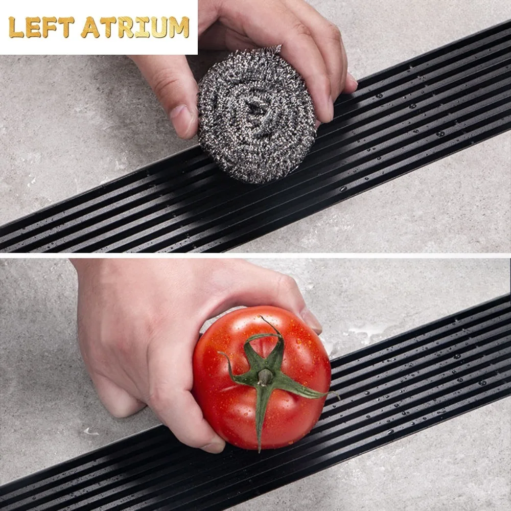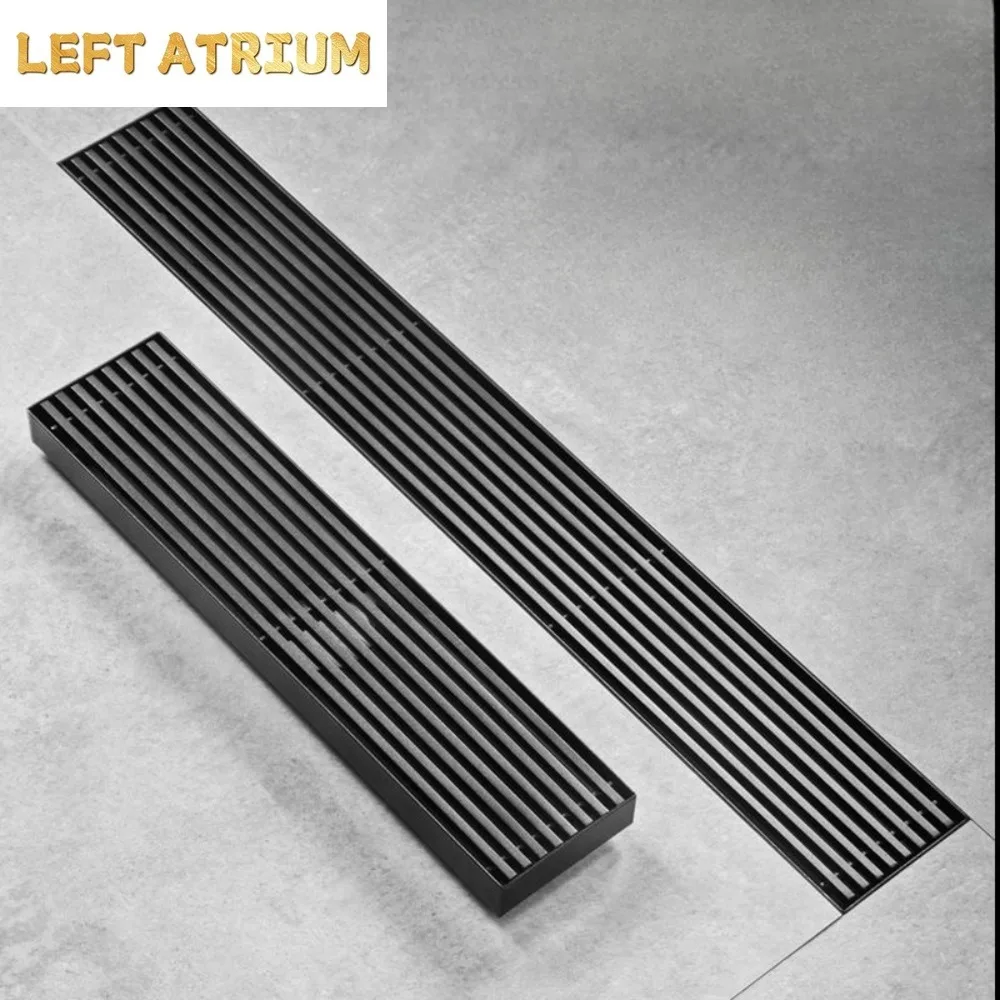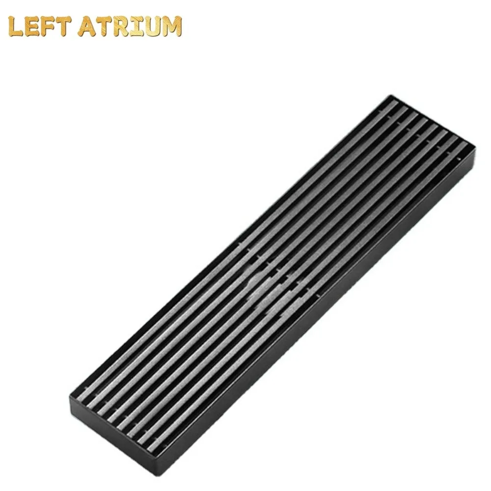 รางระบายน้ำยาวสีดำ สแตนเลส รางระบายน้ำแบบขยายสำหรับห้องอาบน้ำ กลางแจ้ง ระบายน้ำได้ปริมาณมาก