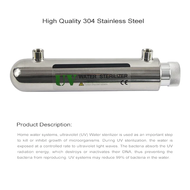 เครื่องกรองน้ำเครื่องฆ่าเชื้อด้วยแสง UV สแตนเลสสำหรับเครื่องกรองน้ำในครัวสำหรับใช้ในครัวเรือน304