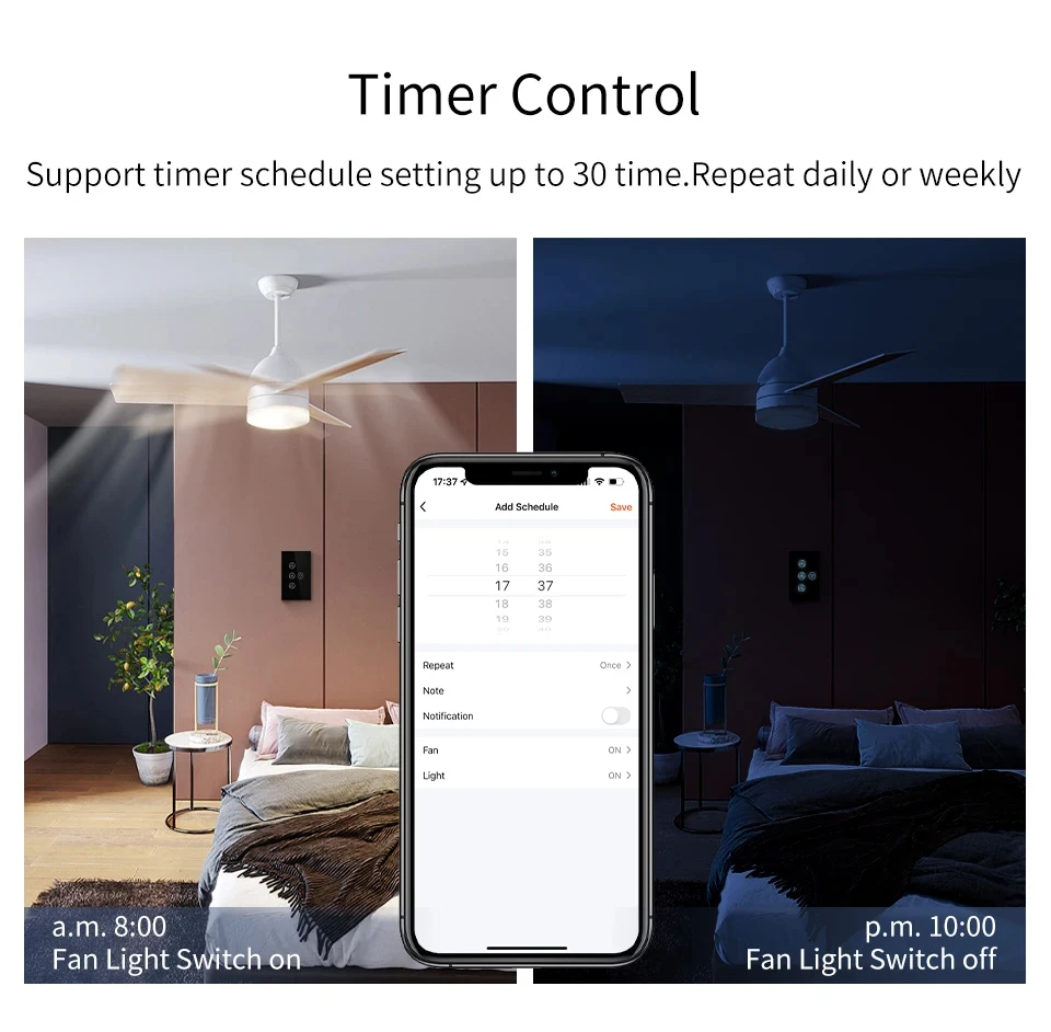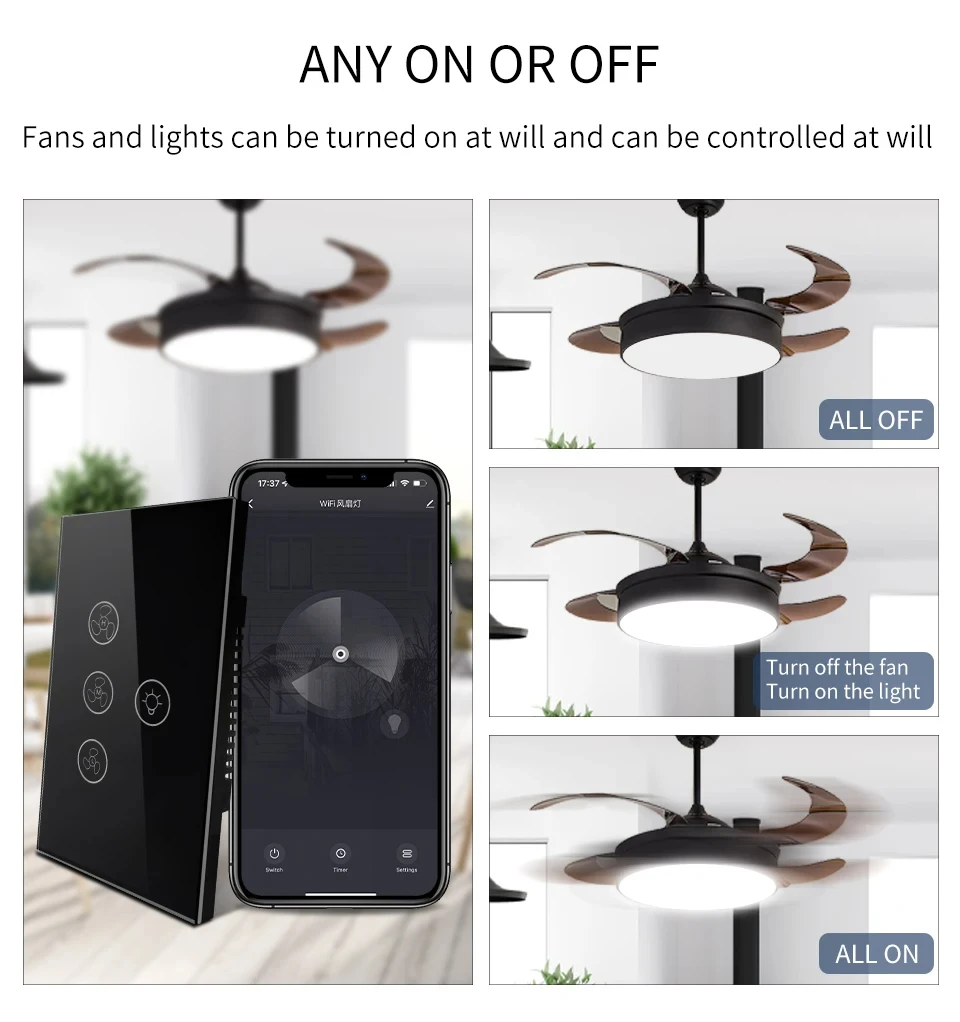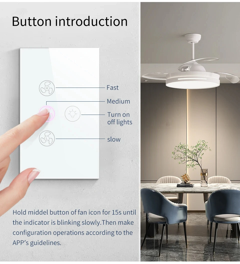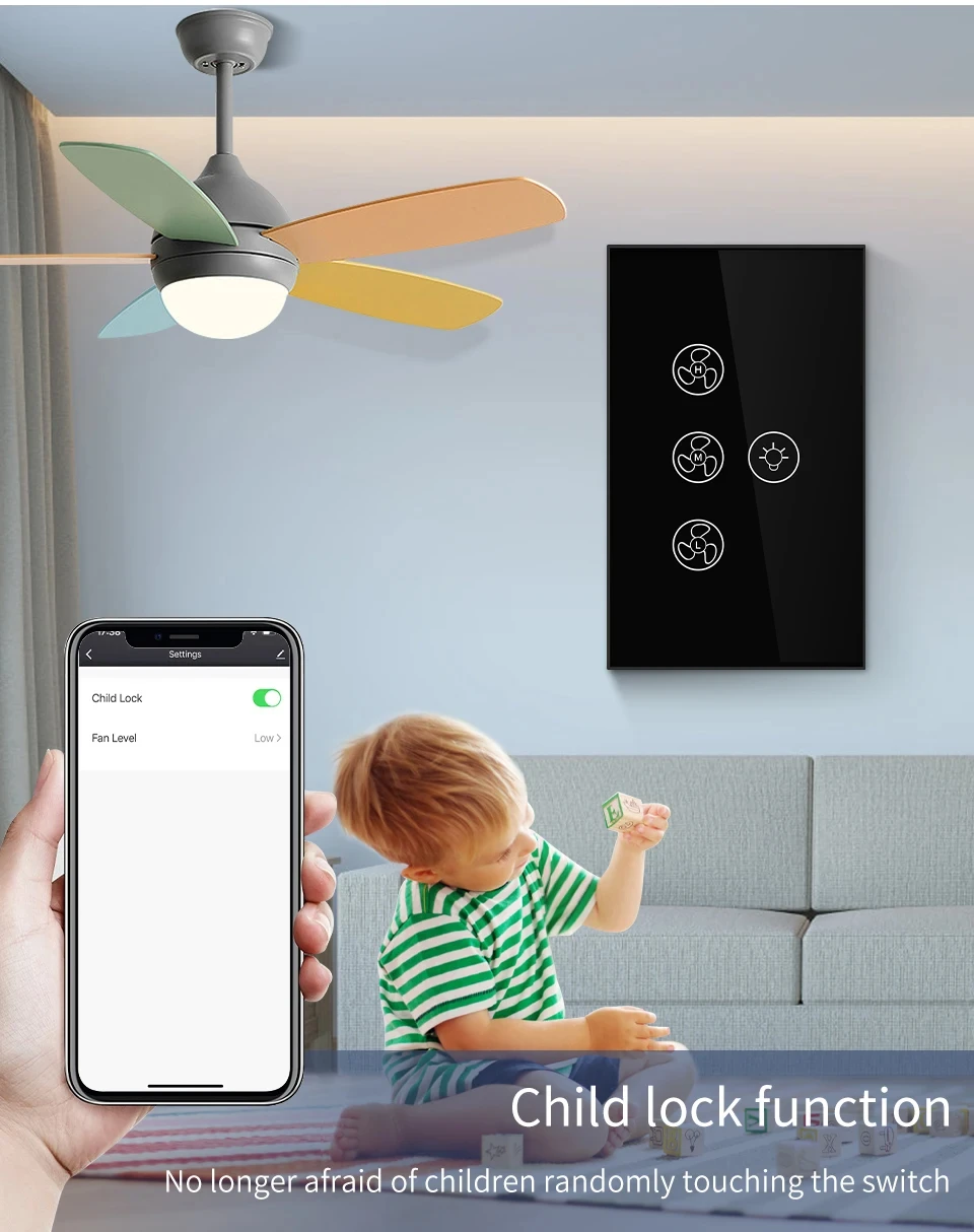 Tuya WiFi พัดลมเพดานสมาร์ทสวิทช์ Touch Interruptor Smart Home App ควบคุมความเร็วระยะไกลทํางานร่วมกับ Alexa Google Home จาก 1 รีวิว