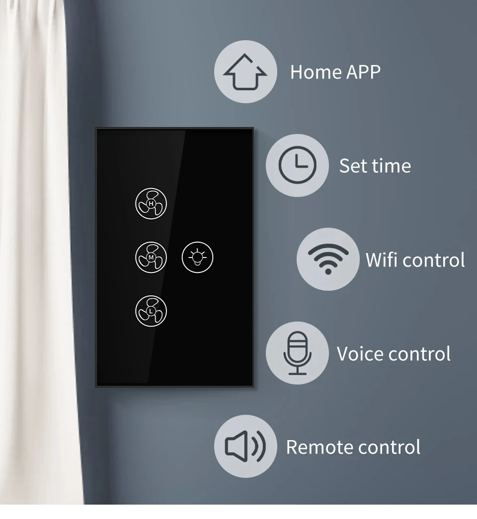 Tuya WiFi พัดลมเพดานสมาร์ทสวิทช์ Touch Interruptor Smart Home App ควบคุมความเร็วระยะไกลทํางานร่วมกับ Alexa Google Home