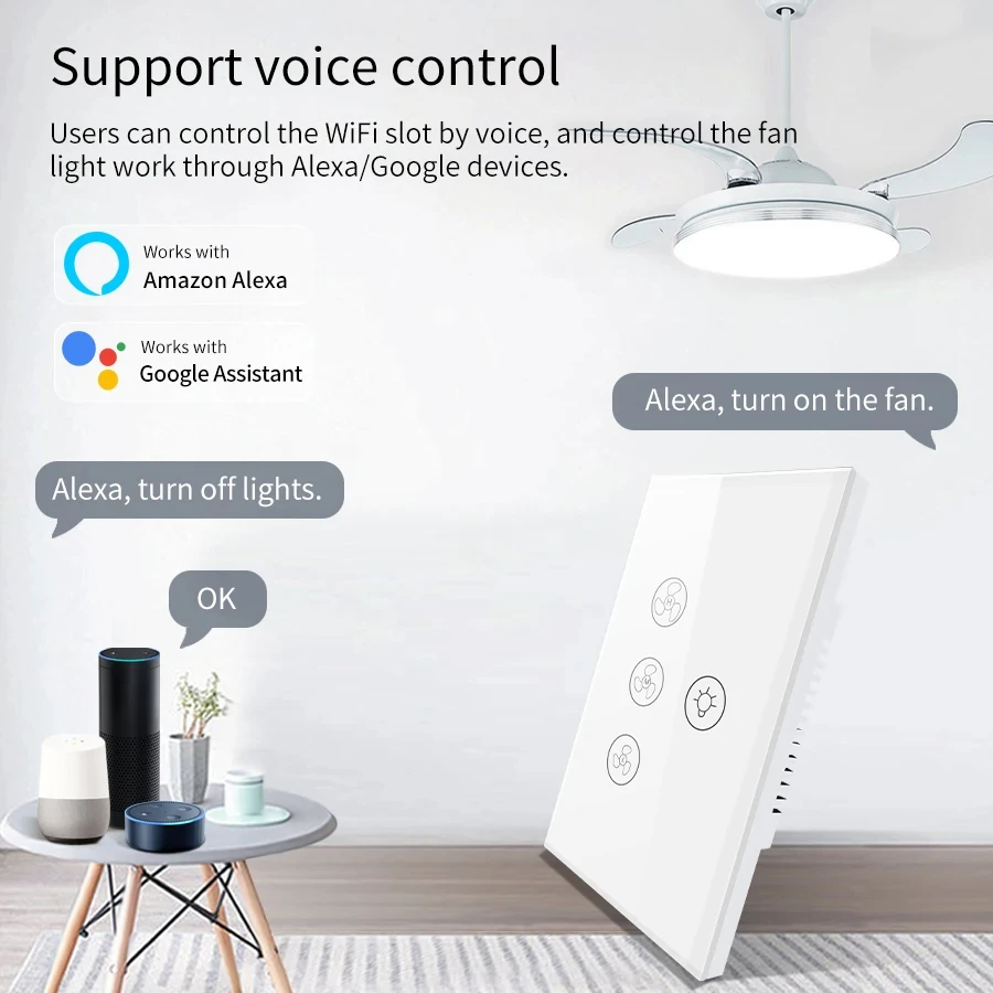Tuya WiFi พัดลมเพดานสมาร์ทสวิทช์ Touch Interruptor Smart Home App ควบคุมความเร็วระยะไกลทํางานร่วมกับ Alexa Google Home