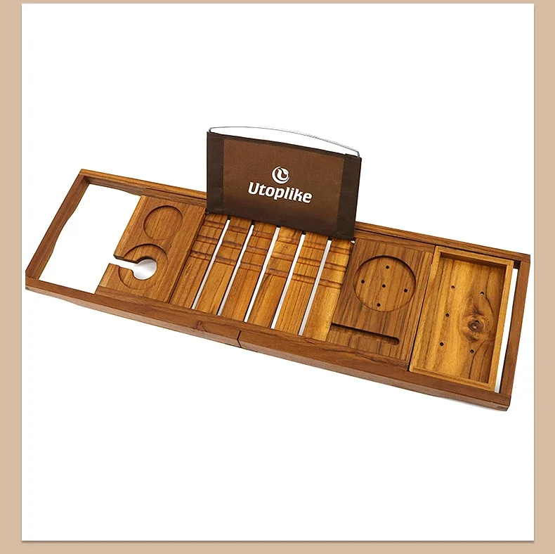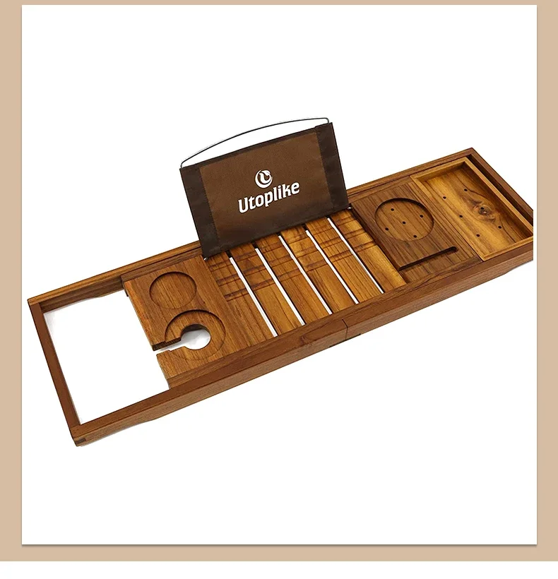 ชั้นวางของในอ่างอาบน้ำแบบพับเก็บได้ตัวยึดแท็บเล็ตโทรได้แบบเคลื่อนที่ได้ของโรงแรมทำจากไม้ป้องกันการกัดกร่อน