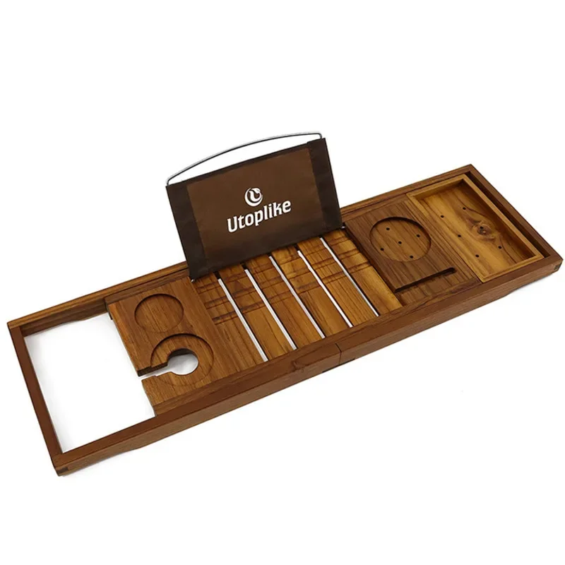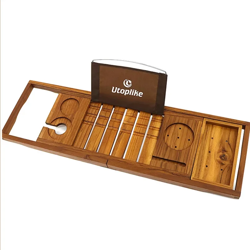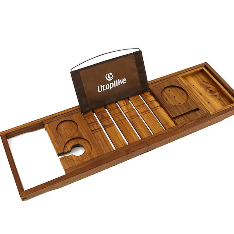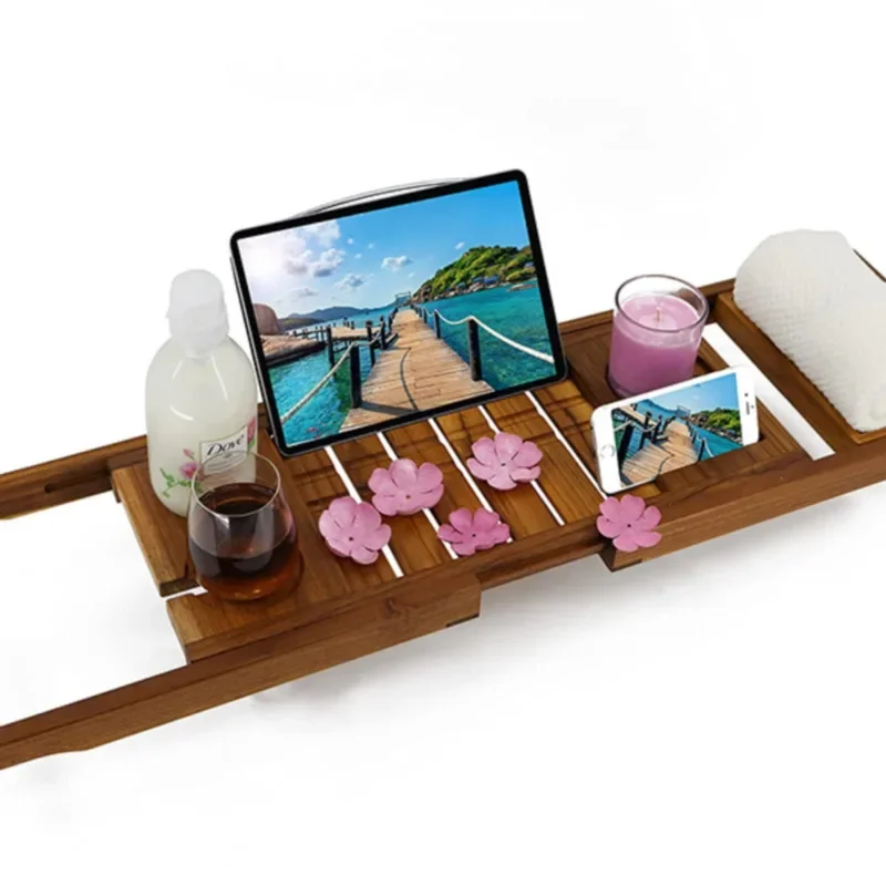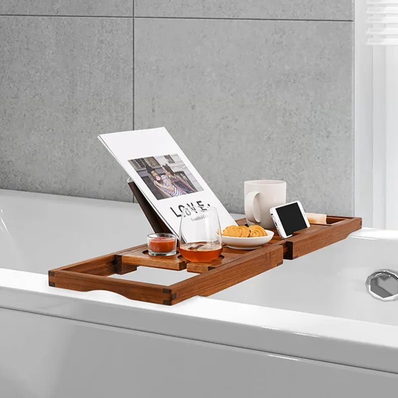 ชั้นวางของในอ่างอาบน้ำแบบพับเก็บได้ตัวยึดแท็บเล็ตโทรได้แบบเคลื่อนที่ได้ของโรงแรมทำจากไม้ป้องกันการกัดกร่อน