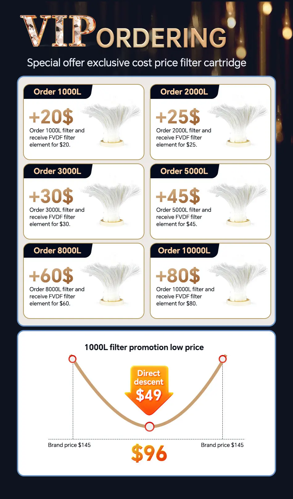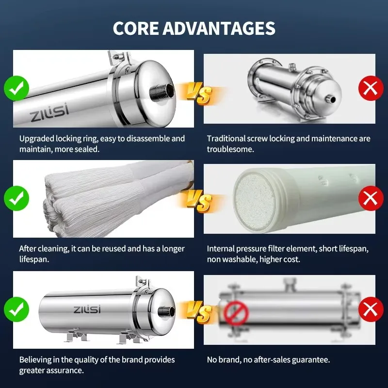 ไส้กรองน้ำสเตนเลส PVDF แบบไหลสูงสำหรับทั้งบ้าน พร้อมระบบล้างย้อนกลับ กรองละเอียดสำหรับแหล่งน้ำต่างๆ 1000L-10000L จาก 3 รีวิว