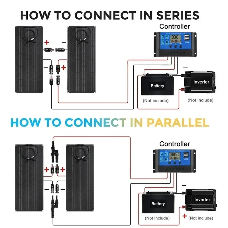 300W 600W แผงพลังงานแสงอาทิตย์แบบยืดหยุ่น 12V 24V ชาร์จพลังงานแสงอาทิตย์ชุดแบตเตอรี่ 30A/60A Controller สําหรับ Camping RV Home Solar Power Bank