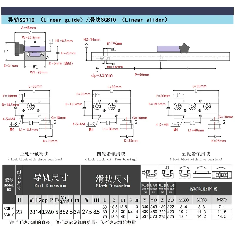 1 ชุด = 1 ชิ้นคู่มือเชิงเส้น SGR10 + 1 ชิ้น SGB10UU บล็อก