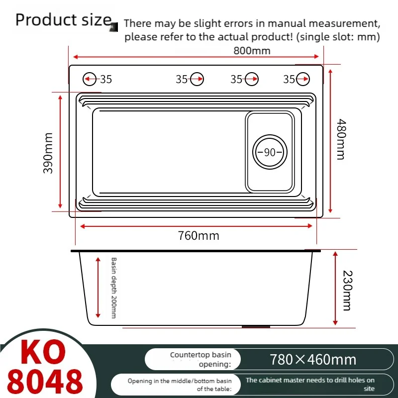 อ่างล้างจานครัวสแตนเลส 304 แบบช่องเดียวขนาดใหญ่ อเนกประสงค์ สำหรับล้างจาน ล้างผัก อ่างแบบฝังใต้เคาน์เตอร์