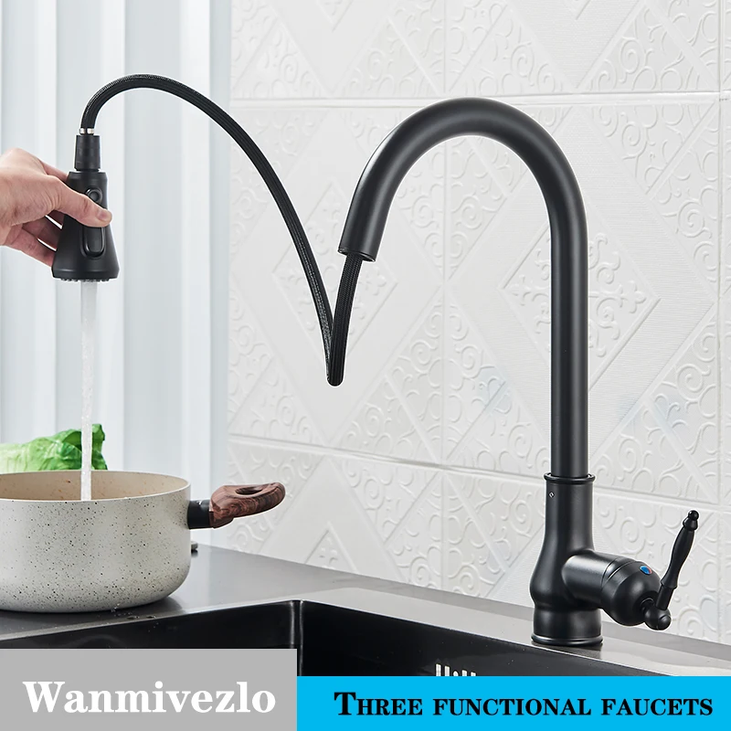 Wanmivezlo ก๊อกน้ำสำหรับห้องครัวอ่างล้างจานในครัวแบบดึงออกได้360 ° การหมุนด้วยน้ำร้อนน้ำเย็นก๊อกน้ำแบบก้านเดียวติดตั้งเครื่องพ่นสตรีม