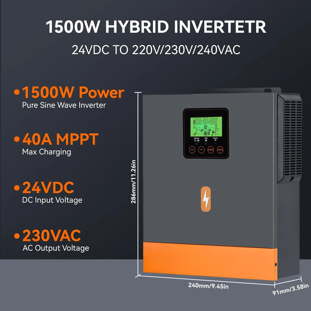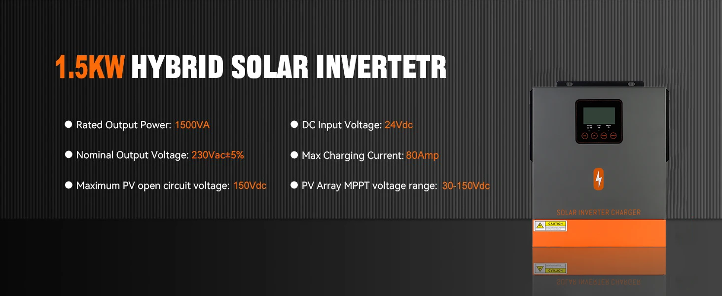 PowMr อินเวอร์เตอร์พลังงานแสงอาทิตย์ไฮบริด 1.5KW 12V 220V พร้อม Pure Sine Wave และ MPPT Solar Charge Controller 80A รองรับแผงโซลาร์เซลล์แรงดันไฟฟ้าต่ำ 30-150VDC