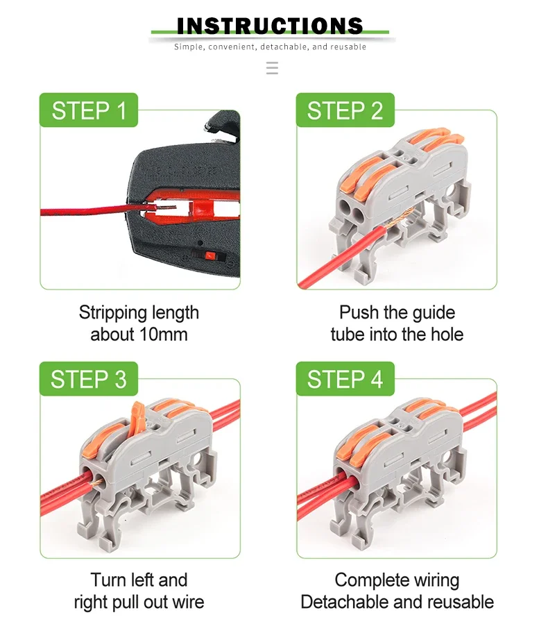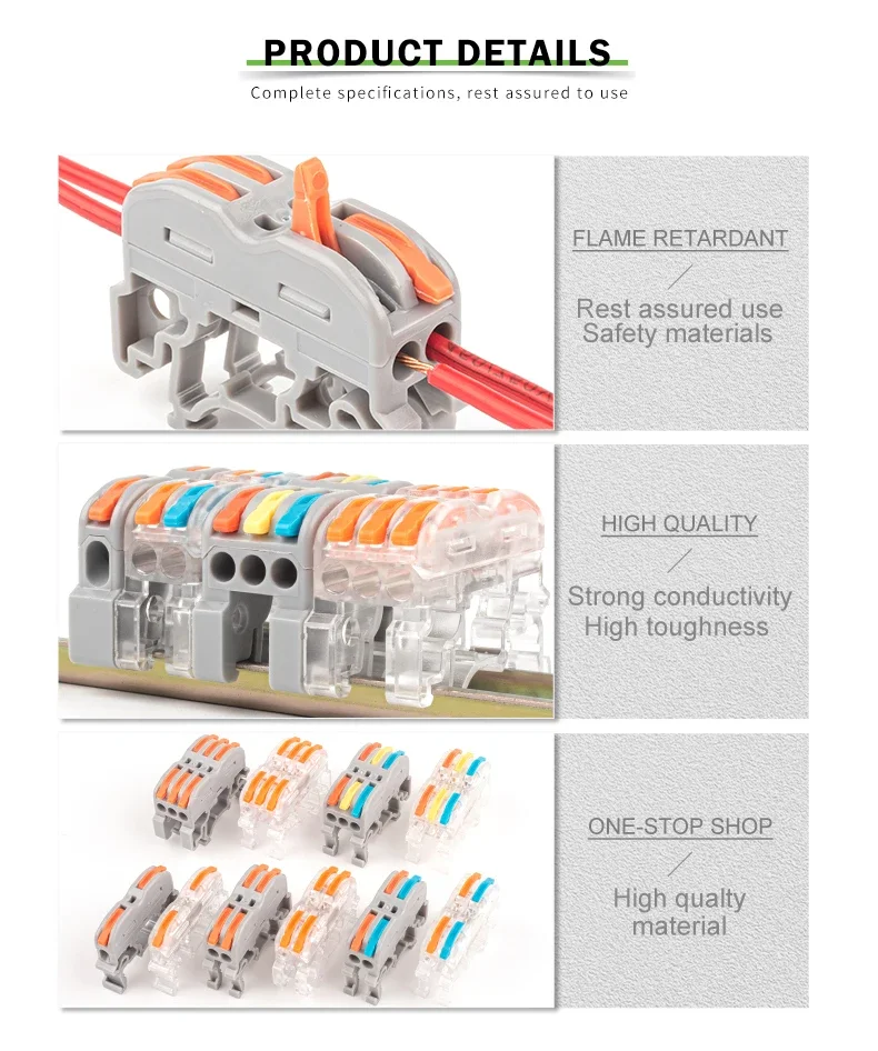 ขั้วต่อสายไฟ ขั้วต่อสายไฟ Din Rail Type Fast Universal Compact Conductor ขั้วต่อสายไฟ LED Push-in Butt Terminal Block จาก 1 รีวิว
