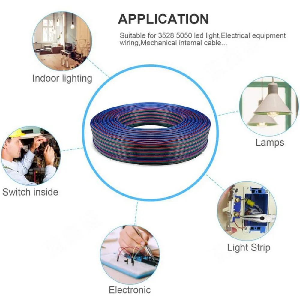 สายต่อขยายสำหรับแถบไฟ LED สี RGB และ RGBW รุ่น 3528 5050 เหมาะสำหรับการเชื่อมต่ออุปกรณ์อิเล็กทรอนิกส์และเครื่องใช้ไฟฟ้า, หม้อแปลงไฟฟ้า, โคมไฟและสายไฟมอเตอร์, แถบไฟ LED, การเชื่อมต่อตัวแยกไฟ LED เป็นต้น