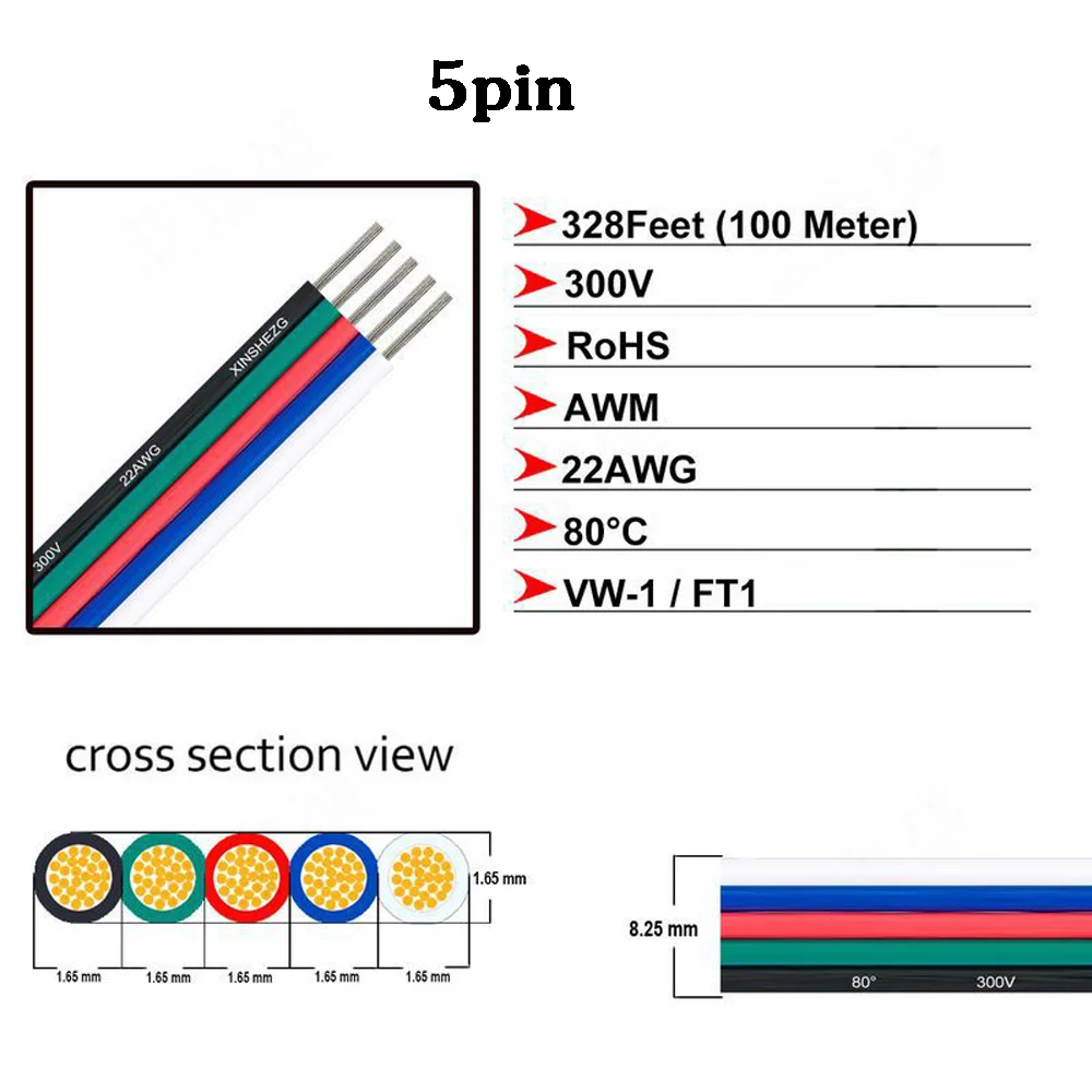 Color: 5PIN Wire Package Quantity: 5M Ships From: China Mainland