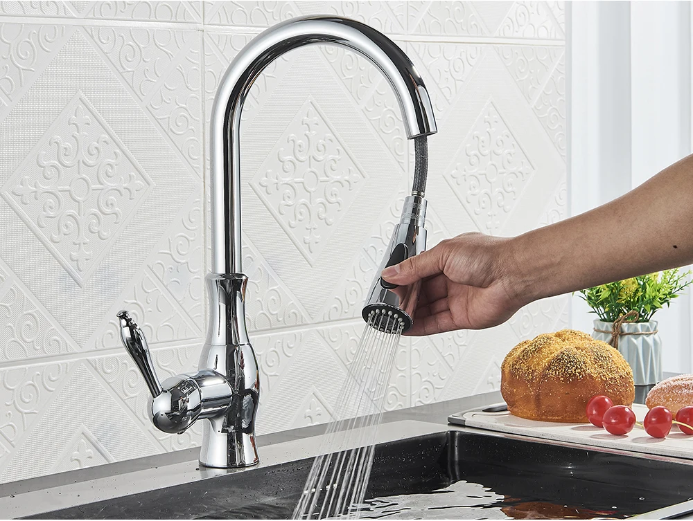POIQIHY Black Kitchen Faucet Pull Out Kitchen Sink Mixer Tap Bathroom Cold Hot Mixer Tap Crane For Kitchen 360 Rotation