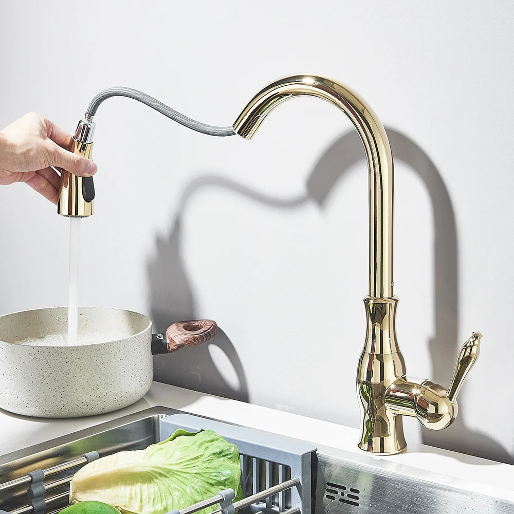 POIQIHY Black Kitchen Faucet Pull Out Kitchen Sink Mixer Tap Bathroom Cold Hot Mixer Tap Crane For Kitchen 360 Rotation