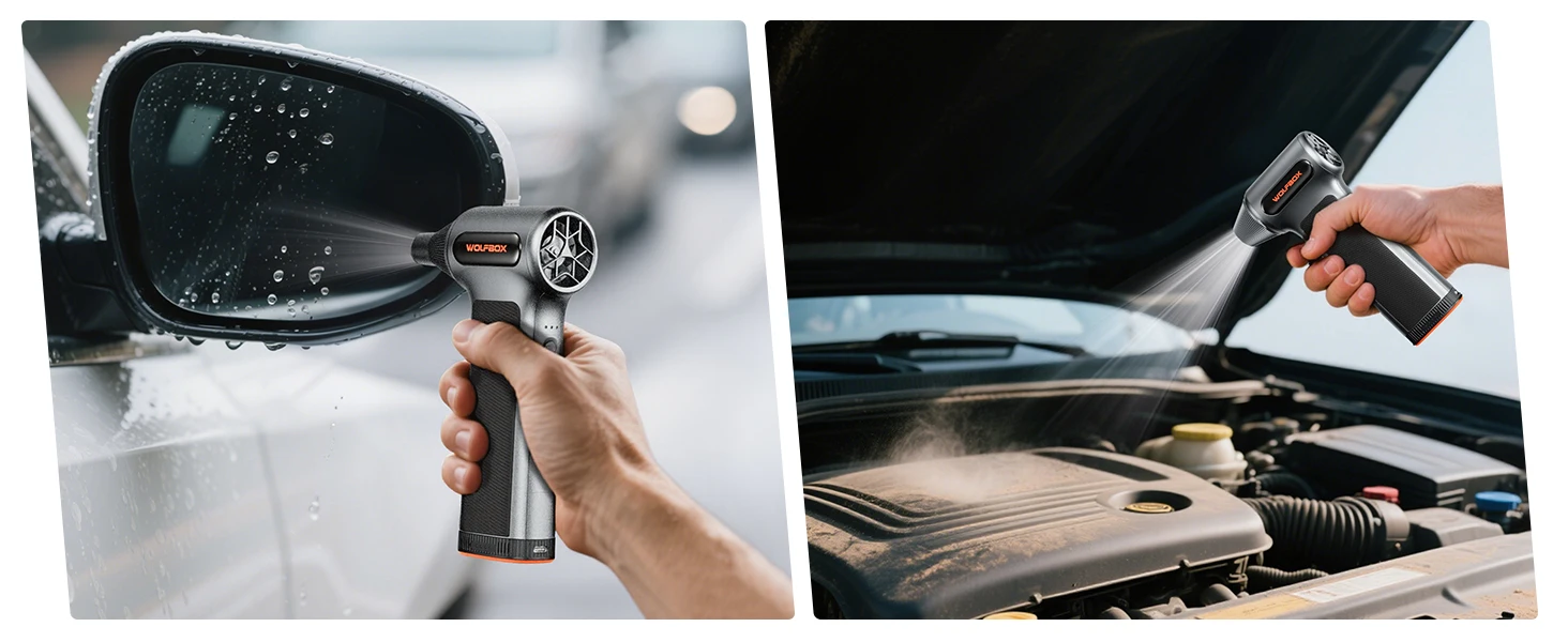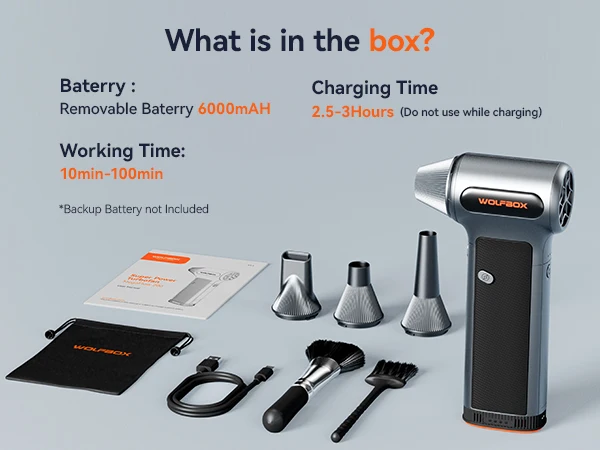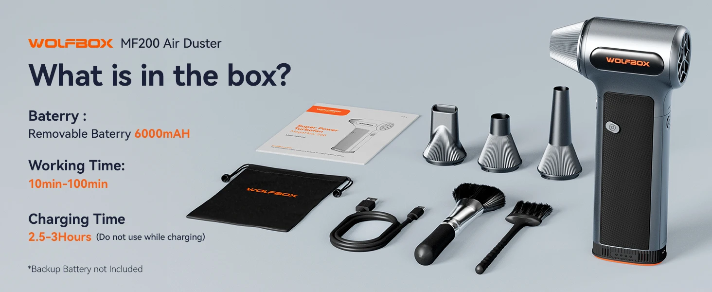 WOLFBOX MF200 เครื่องเป่าลมไฟฟ้า-แรงลม 320 กรัม, มอเตอร์ไร้แปรงถ่านแบบชาร์จไฟได้ 3 ระดับ สำหรับรถยนต์/คอมพิวเตอร์/บ้าน/กลางแจ้ง จาก 2 รีวิว