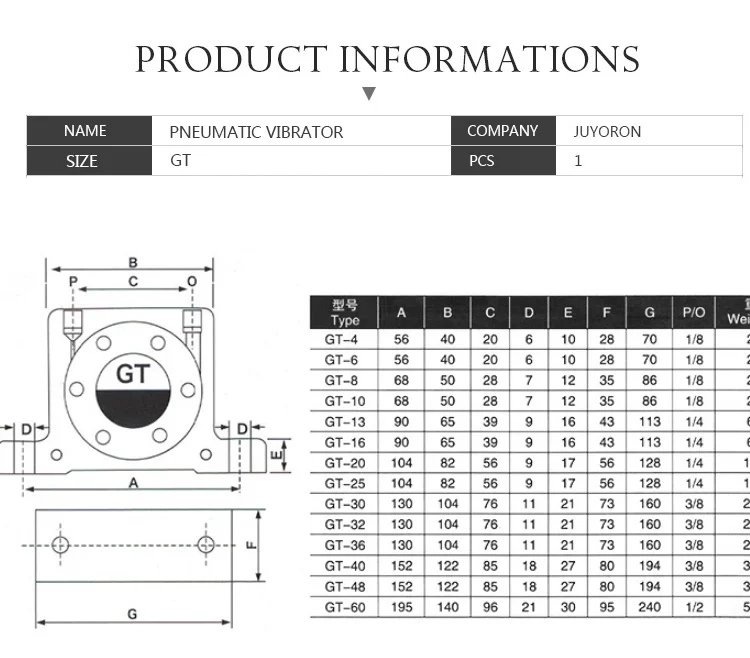 GT8/10/13/16/20/25/30/36/48/60 นิวเมติกVibrator GT Turbine OscillatorsนิวเมติกอุตสาหกรรมVibrator Hammer Blankingอะไหล่ จาก 1 รีวิว