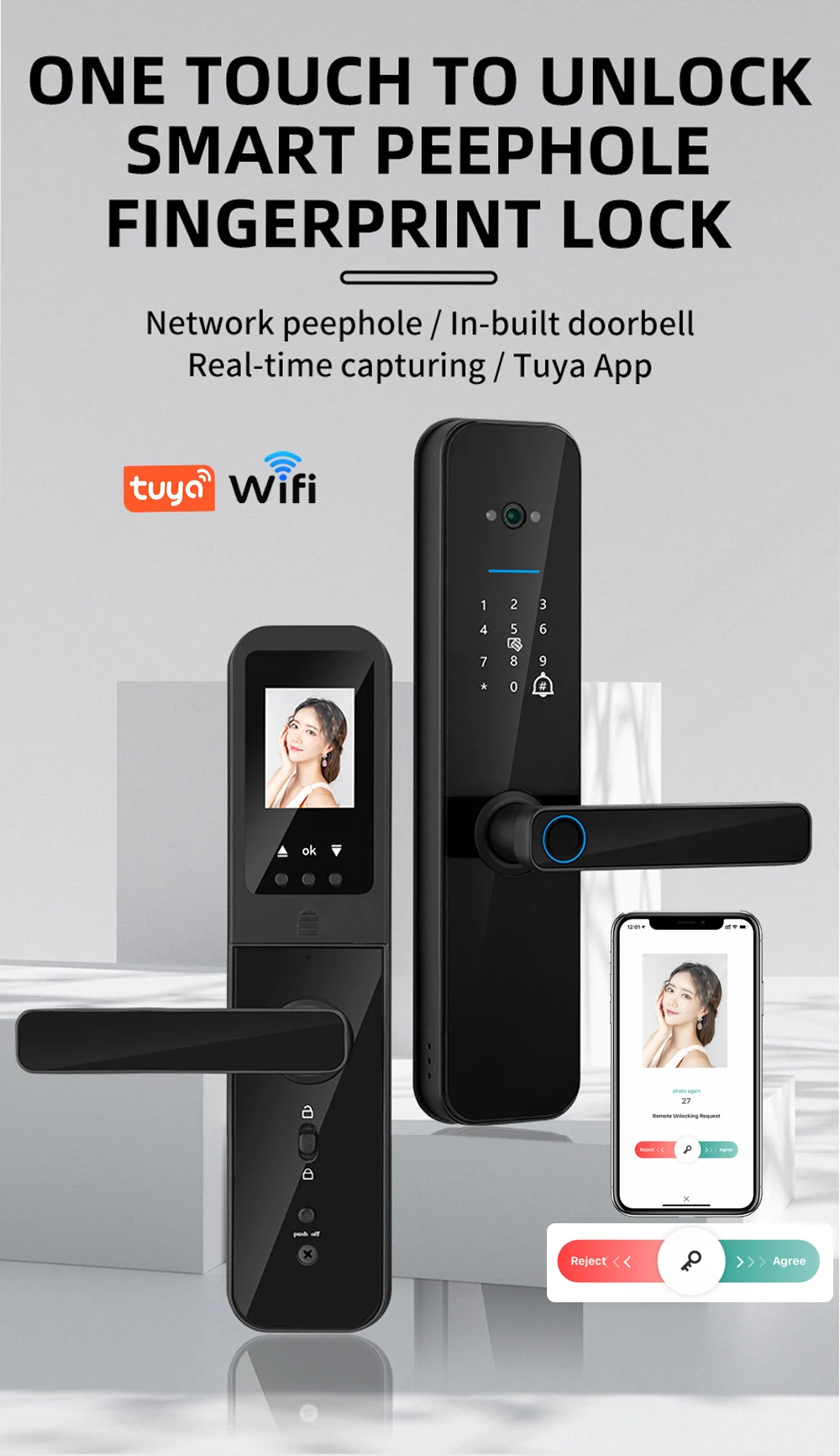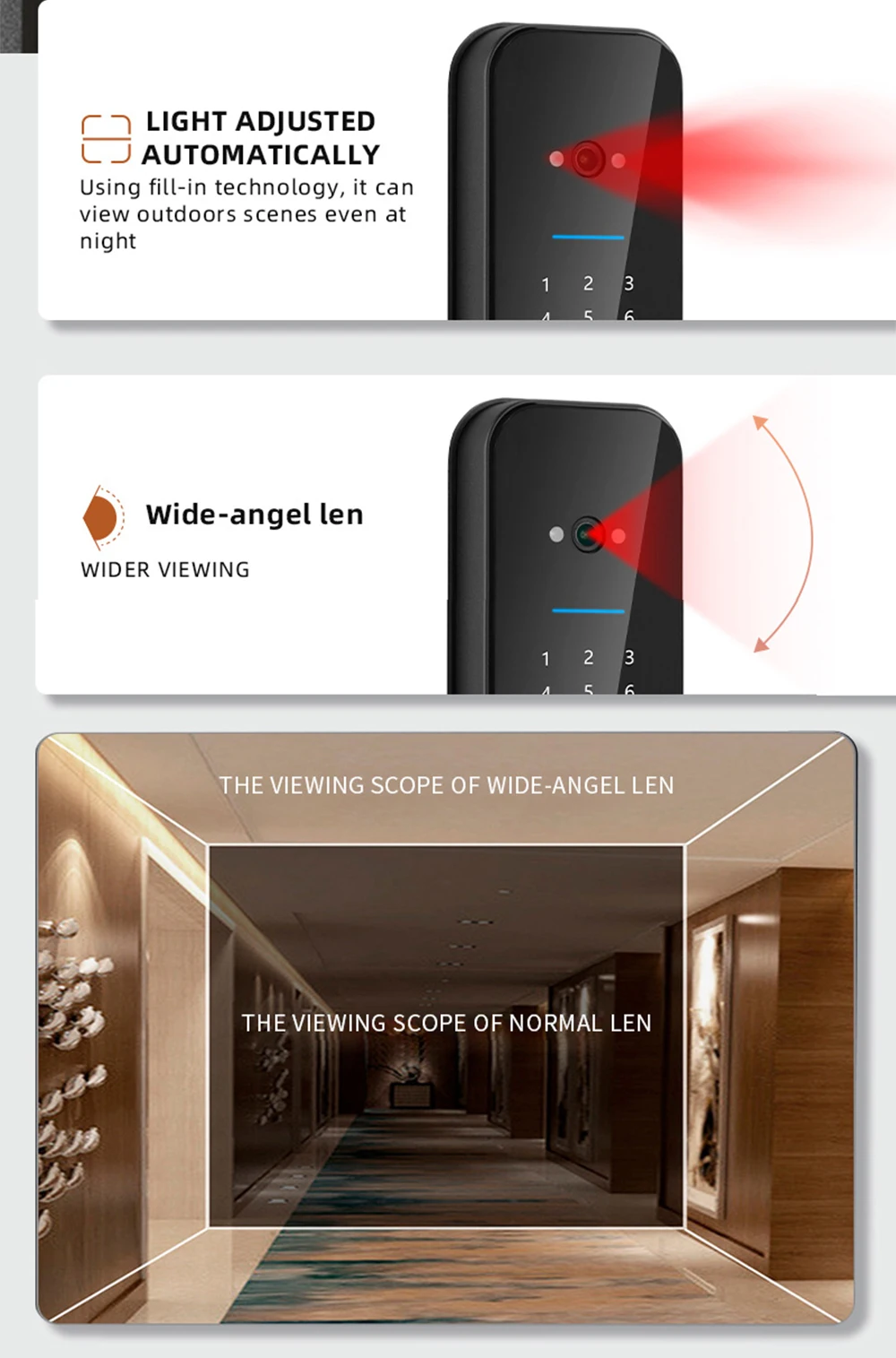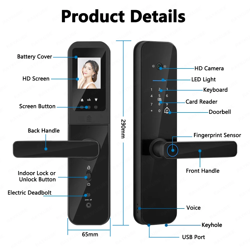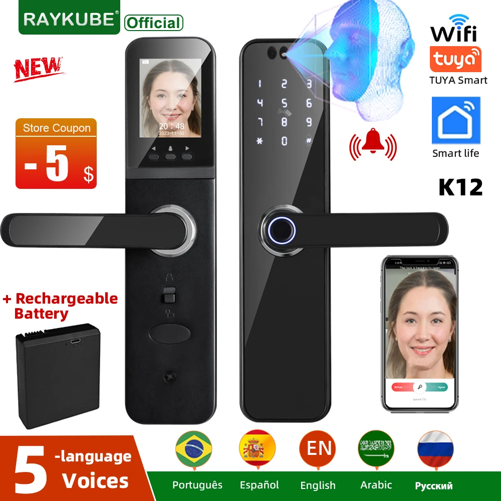 RAYKUBE F008 Tuya Wifi peephole HD กล้องลายนิ้วมือดิจิตอลสมาร์ทประตูล็อค Doorbell ในตัว Gateway APP ปลดล็อคระยะไกล