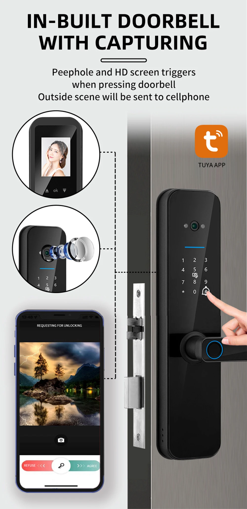 RAYKUBE F008 Tuya Wifi peephole HD กล้องลายนิ้วมือดิจิตอลสมาร์ทประตูล็อค Doorbell ในตัว Gateway APP ปลดล็อคระยะไกล จาก 1 รีวิว
