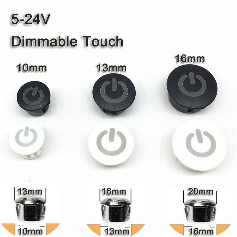 สวิตช์เซ็นเซอร์สัมผัส DC 5v 12v 24v ระยะห่างรู 10 มม. 13 มม. 16 มม. ไฟ LED สมาร์ทโฮม พร้อมหรี่ไฟ ติดตั้งแบบซ่อน สวิตช์สัมผัส