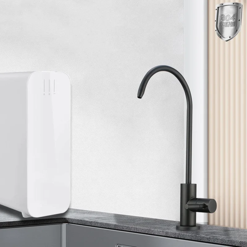 KKTNSG Matt สีดํา SUS304 ดื่มโดยตรง TAP Anti-Osmosis ก๊อกน้ําอ่างล้างจานในตัวเครื่องกรองน้ํา 1/4 นิ้ว