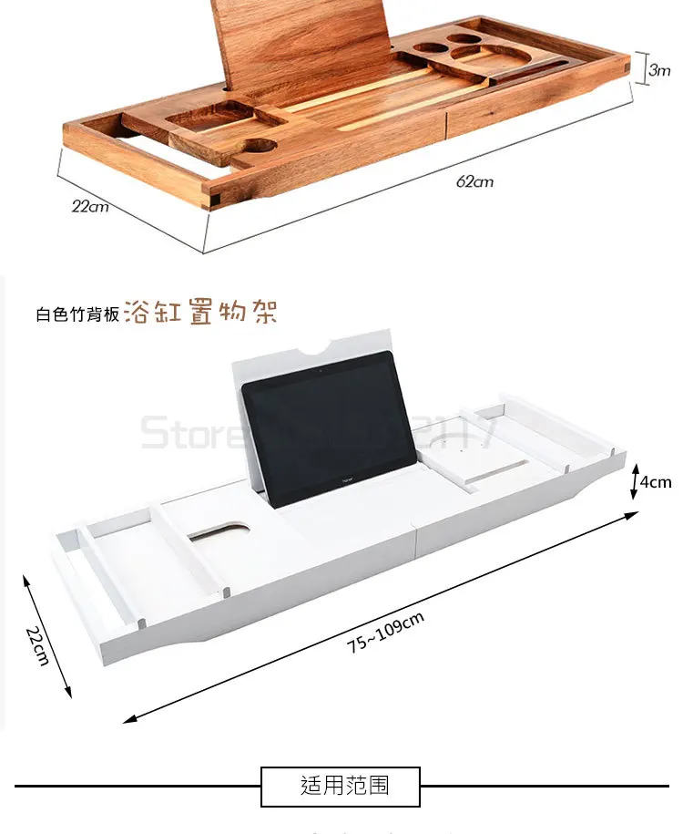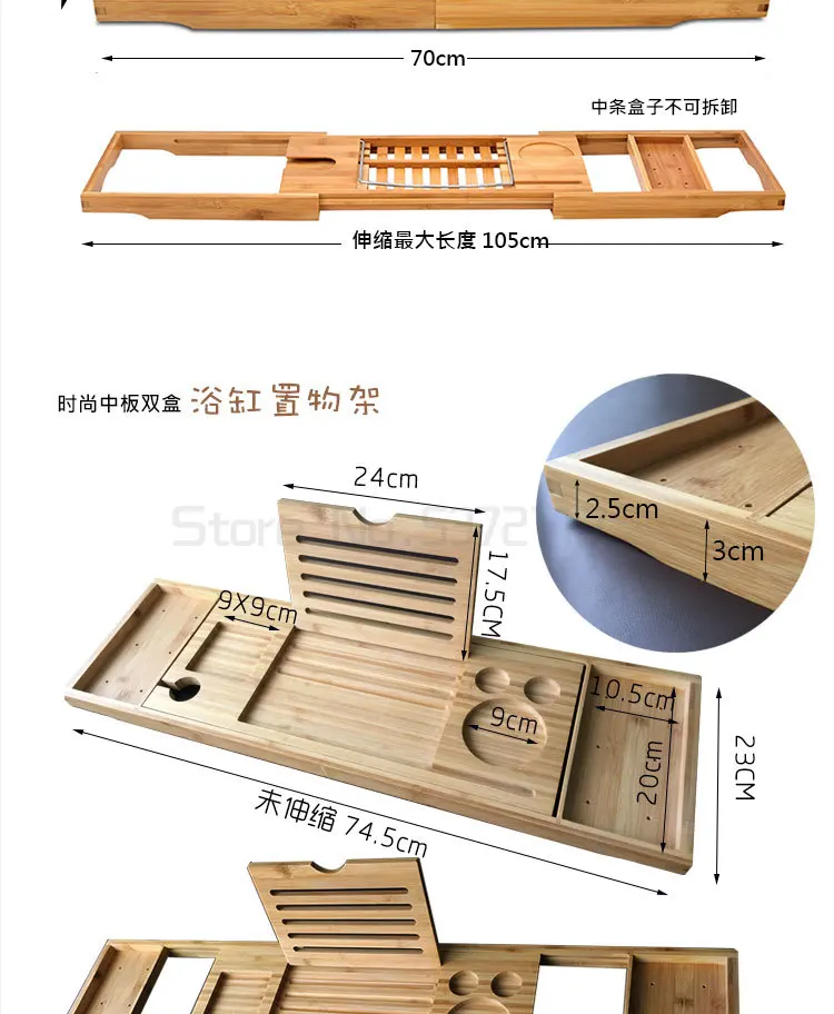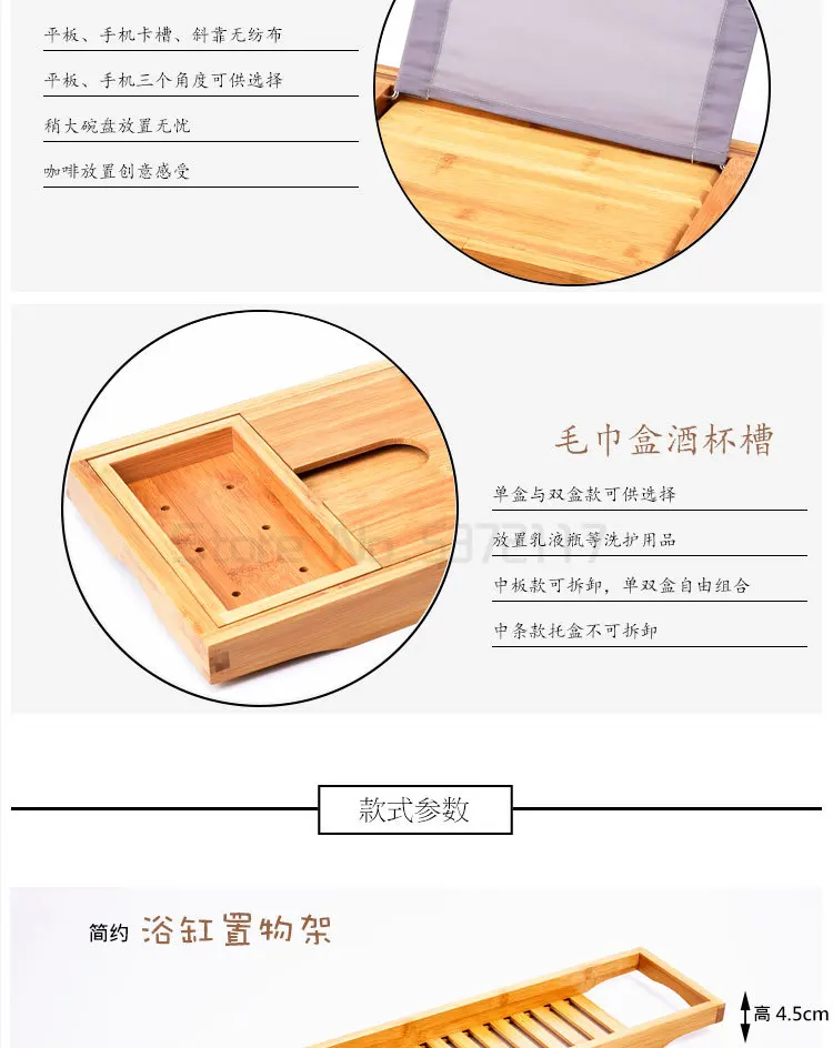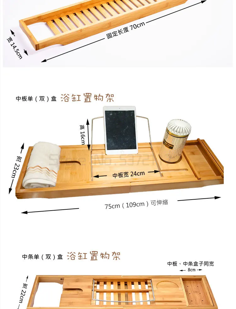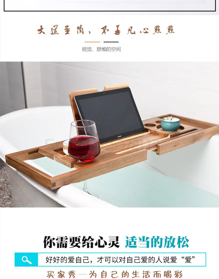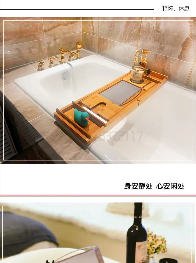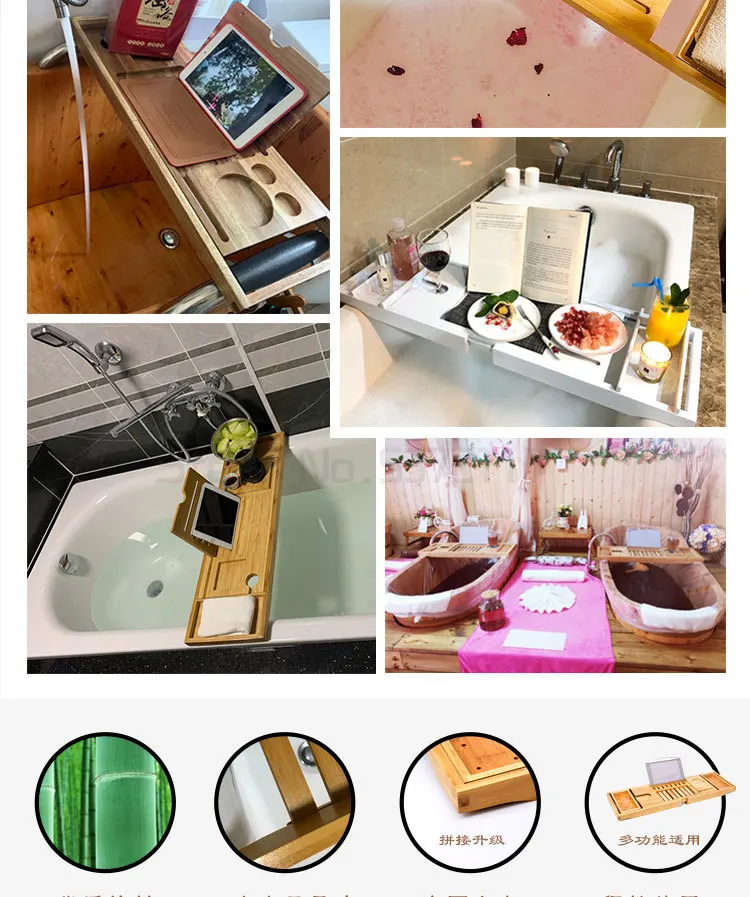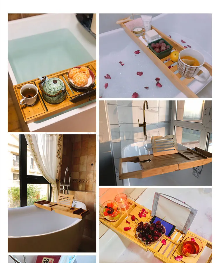 ถาดวางของในอ่างอาบน้ำไม้ไผ่, ชั้นวางอ่างอาบน้ำปรับระดับได้, ถาดหรูหราสำหรับการผ่อนคลายและจัดระเบียบ