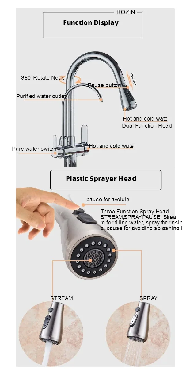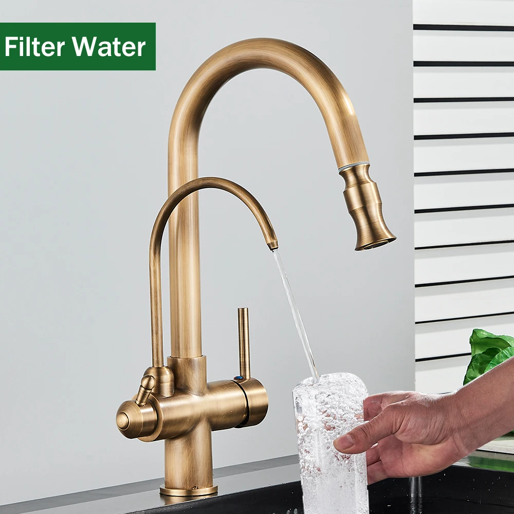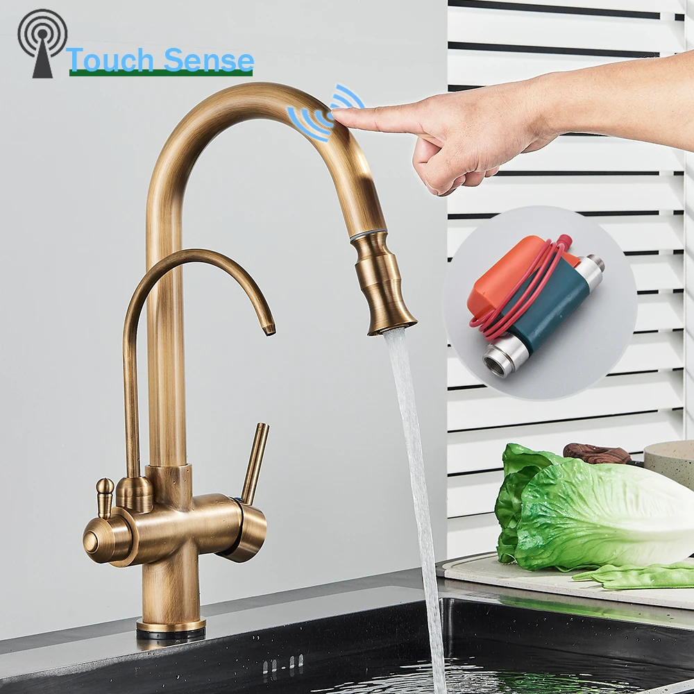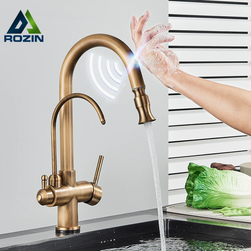 Rozin Touch Sensor กรองก๊อกน้ำห้องครัวก๊อกน้ำทองเหลืองโบราณใส่ Out Sprayer Tap หมุน Pure น้ำ Crane สำหรับห้องครัว