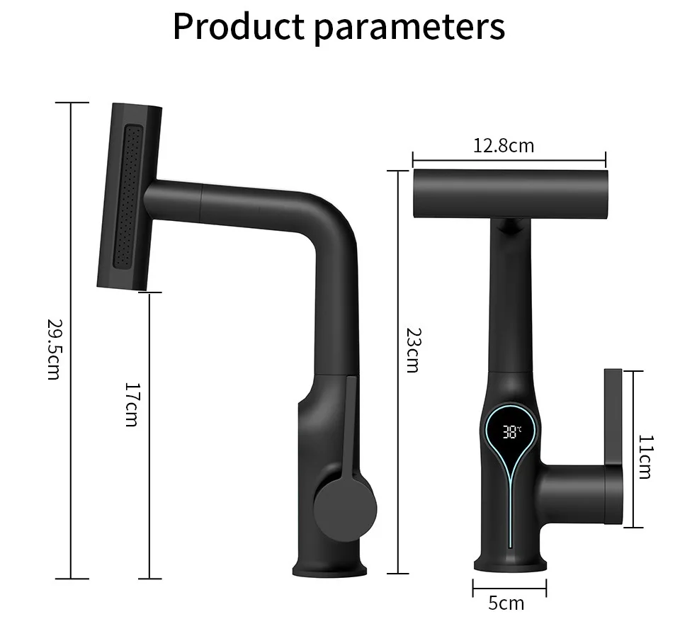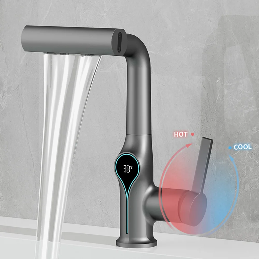ก๊อกน้ำอเนกประสงค์แบบน้ำตก 4 โหมด พร้อมหัวฉีดแบบดึงออกได้ สำหรับห้องน้ำและห้องครัว พร้อมหน้าจอ LED อัจฉริยะ