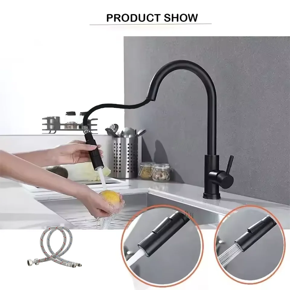ก๊อกน้ำสำหรับห้องครัวผสมร้อนและเย็นก๊อกน้ำสแตนเลสก๊อกอ่างครัวก๊อกน้ำสำหรับห้องครัวแบบดึงออกก๊อกน้ำหลุมเดียว