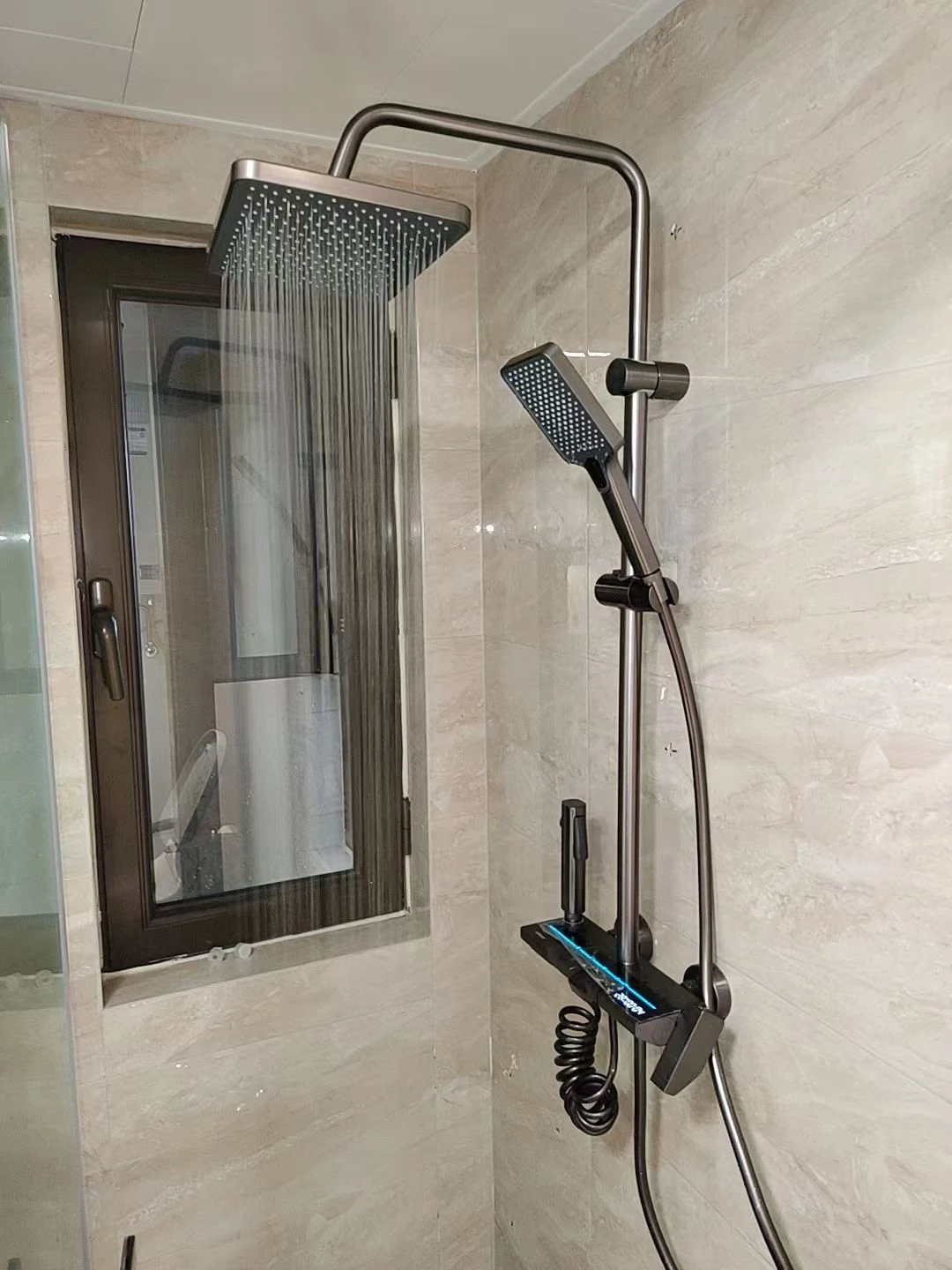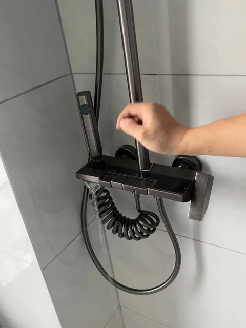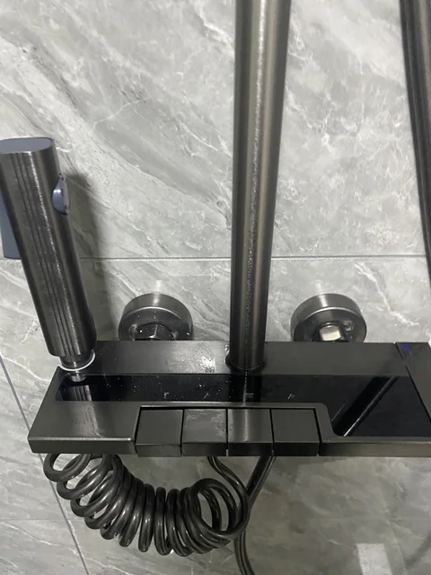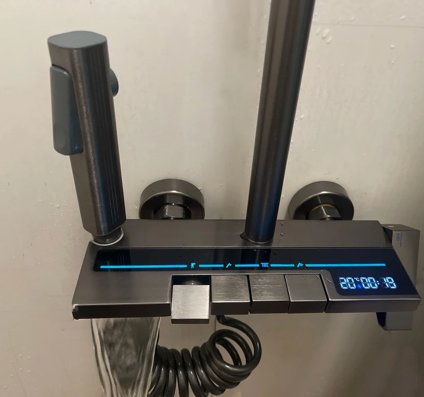 ชุดฝักบัวอาบน้ำอลูมิเนียมพื้นที่ชุดระบบฝักบัวสีเทาปุ่มเปียโนจอแสดงผลดิจิตอลพร้อมไฟโดยรอบก๊อกห้องน้ำหัวฝักบัว จาก 5 รีวิว