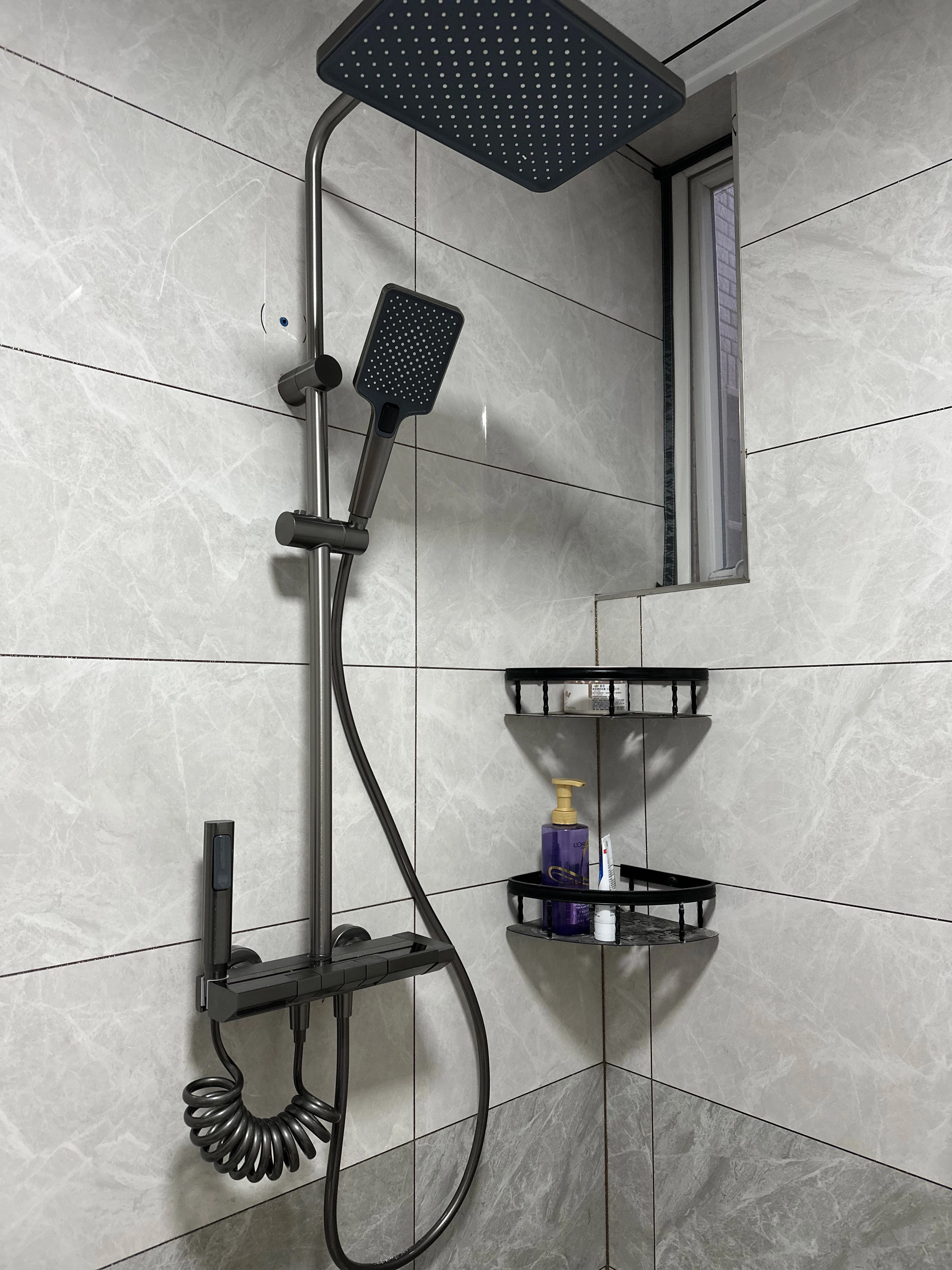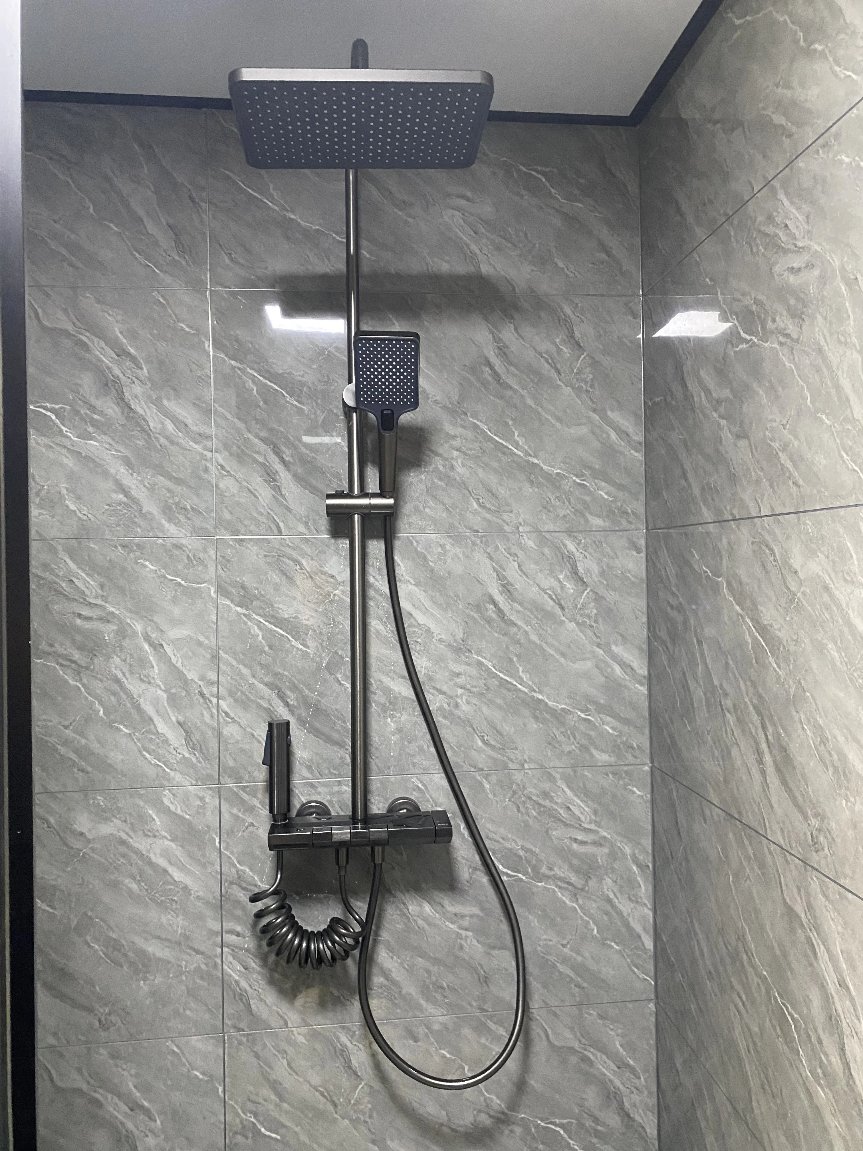 มันค่อนข้างงดงามจริงๆ ฝักบัวถูกเปลี่ยนแล้ว คุณสามารถวางสิ่งของไว้ด้านบนได้จริงๆ ฉันพอใจอย่างยิ่ง