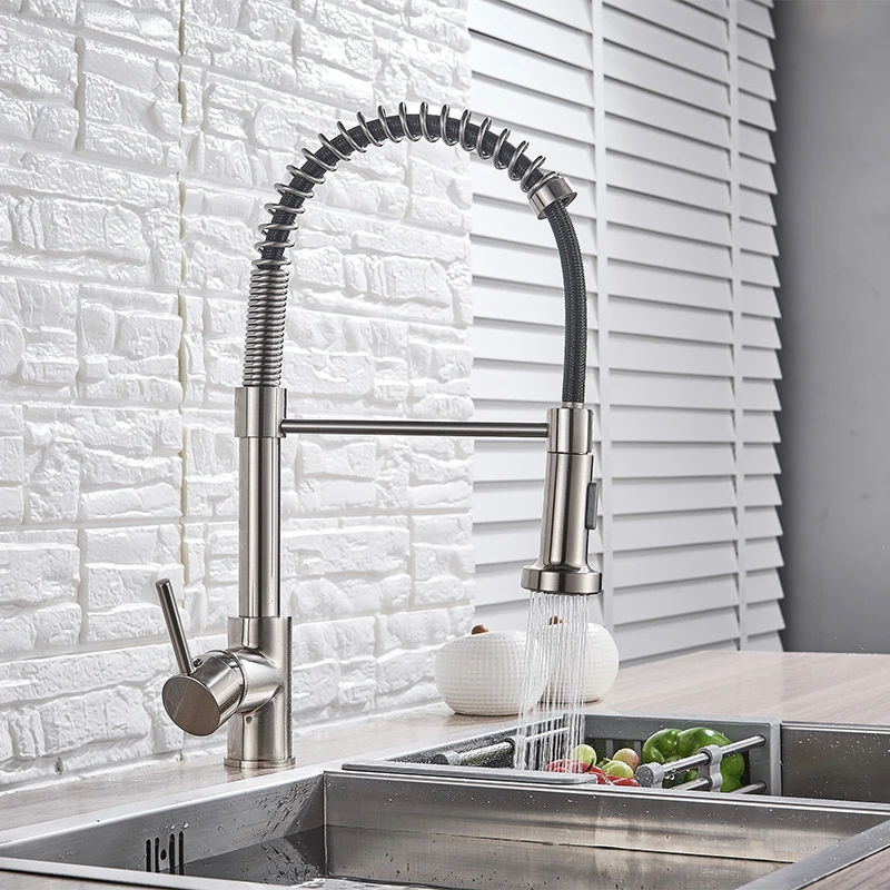 ก๊อกน้ำสำหรับอ่างล้างจานในครัวแบบสปริง, หัวฉีดแบบถอดได้, หัวฉีดแบบแปรง, ก๊อกน้ำสำหรับอ่างล้างจาน, เครื่องผสมแบบติดตั้งบนเคาน์เตอร์, ก๊อกน้ำร้อนและน้ำเย็น