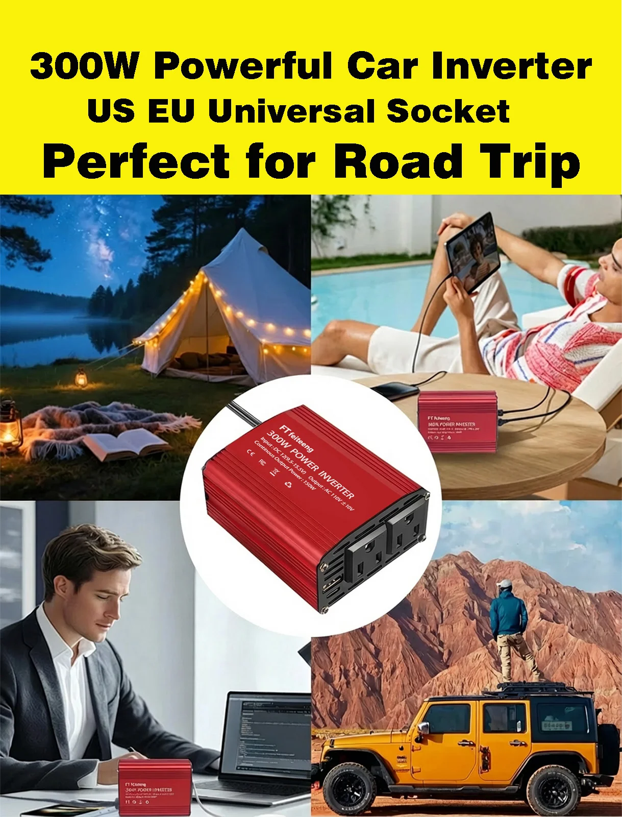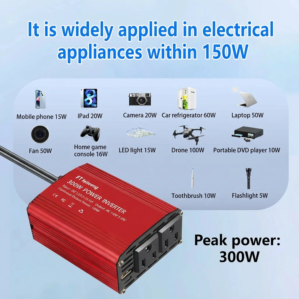 อินเวอร์เตอร์ในรถยนต์สำหรับจุดบุหรี่ของเรามีน้ำหนักเบา พกพาสะดวก และแปลงไฟ DC เป็นไฟ ACเหมาะสำหรับแท็บเล็ตพีซี เครื่องเล่นดีวีดี กล้องดิจิตอล เครื่องทำความสะอาดรถยนต์ เครื่องเสียง มีดโกนไฟสปอร์ตไลท์, แล็ปท็อปโทรศัพท์มือถือ, iPad และอื่นๆ.