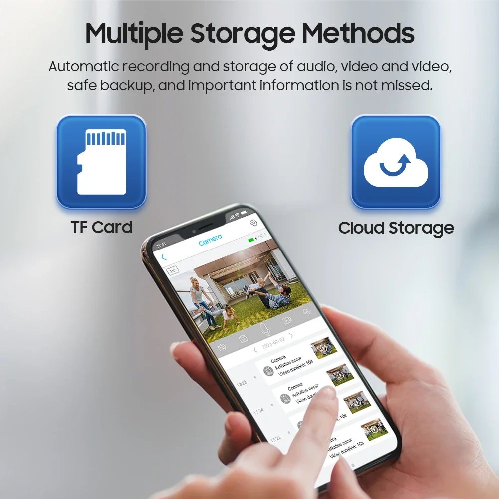 * พื้นที่เก็บข้อมูลบนคลาวด์ฟรี 30 วันและบันทึกการ์ด TF สูงสุด 128GB ความปลอดภัยของข้อมูลวันที่มีเสถียรภาพมากขึ้น